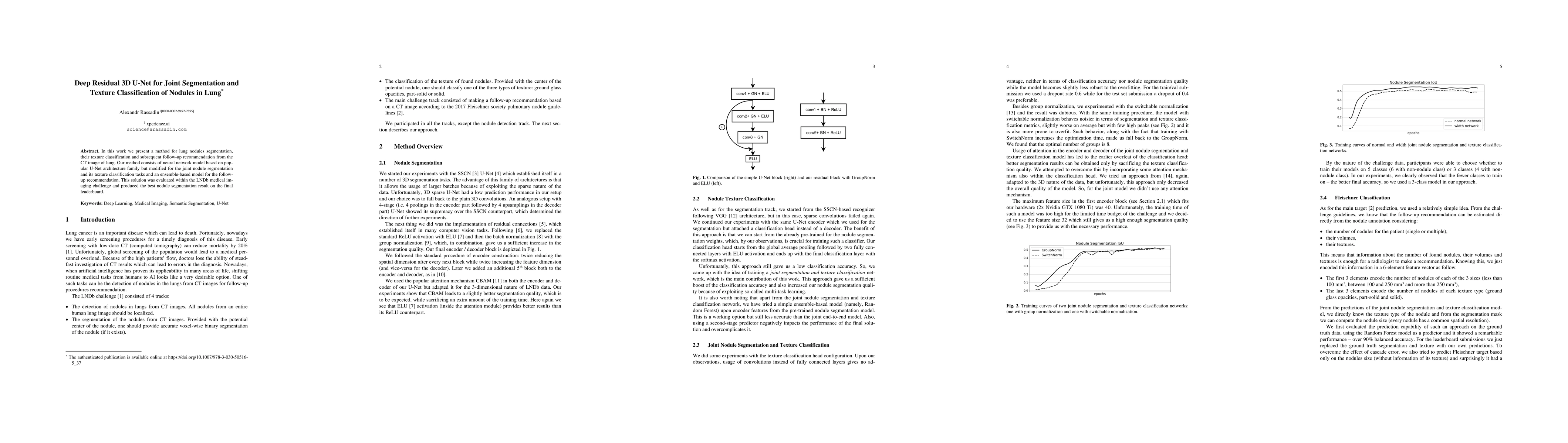 This paper introduces a modified 3D U-Net for joint lung nodule segmentation and texture classification from CT images, achieving top results in the LNDb medical imaging challenge. An ensemble model further enhances follow-up recommendation accuracy.