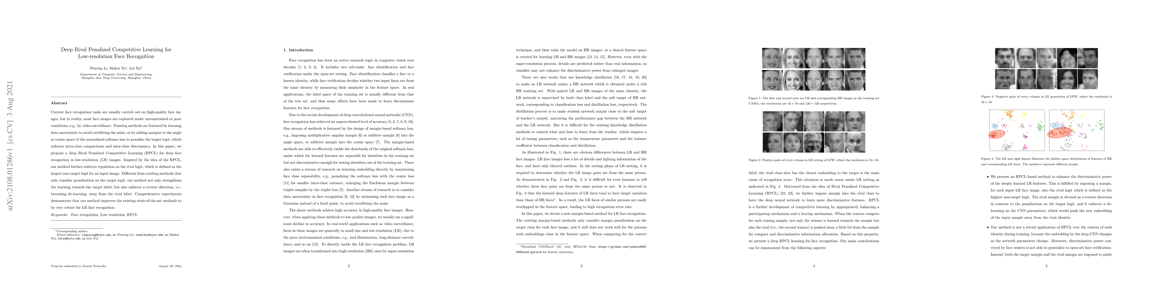 This paper proposes a Deep Rival Penalized Competitive Learning (RPCL) method for low-resolution face recognition, which enhances learning by penalizing both the target logit and the rival logit, leading to improved robustness and performance over existing state-of-the-art methods.