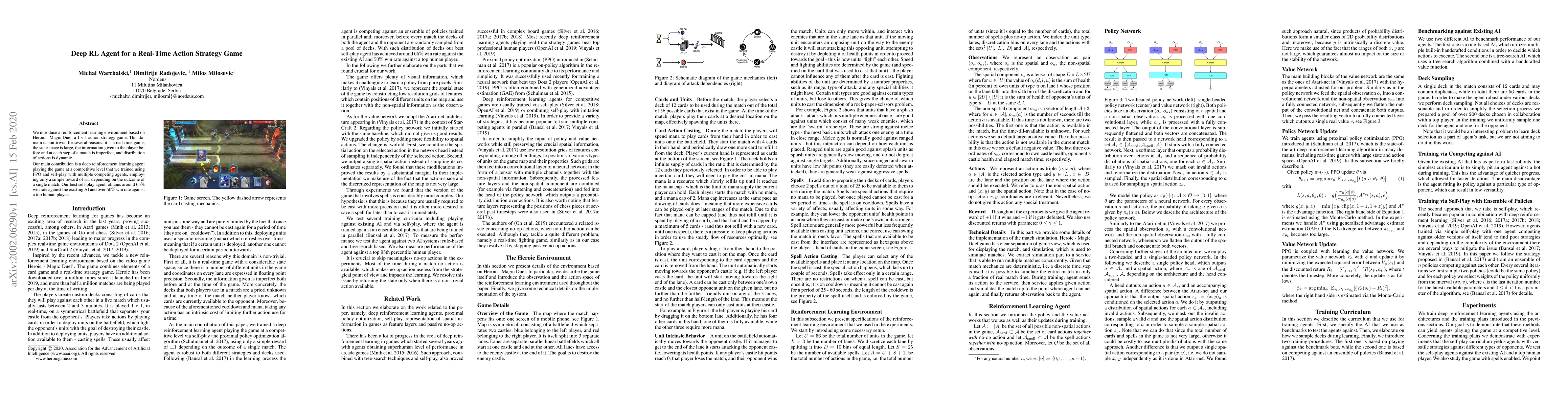 This paper presents a deep reinforcement learning agent for the real-time strategy game Heroic - Magic Duel, achieving competitive performance using PPO and self-play. The agent attains a 65% win rate against existing AI and over 50% against a top human player.