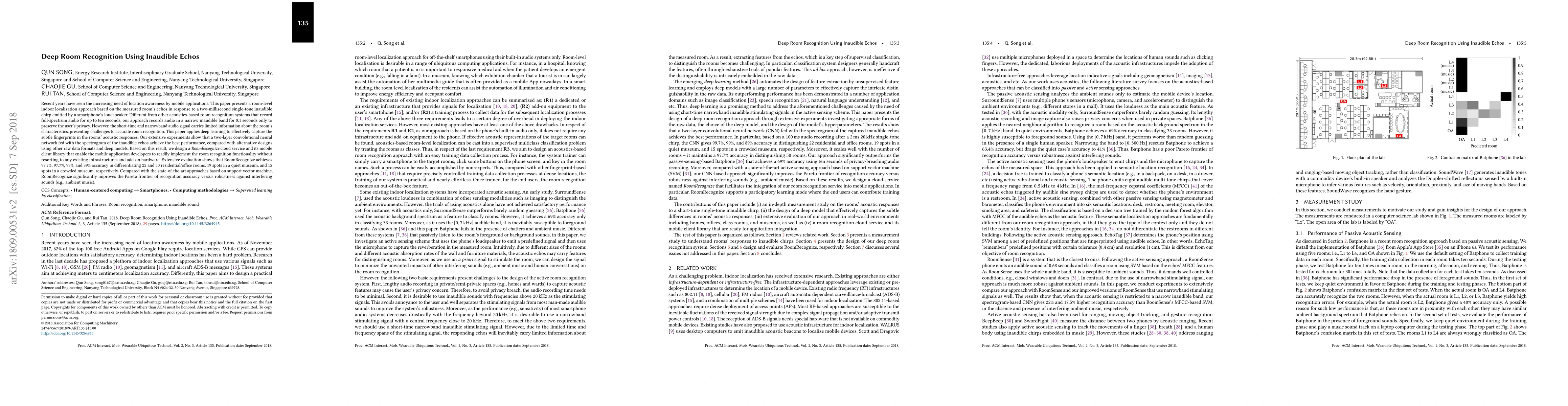 This paper proposes a deep learning-based indoor localization method using inaudible chirps to recognize rooms by analyzing their acoustic echoes. A two-layer convolutional neural network achieves high accuracy in differentiating rooms while maintaining user privacy through short, narrowband audio recordings.
