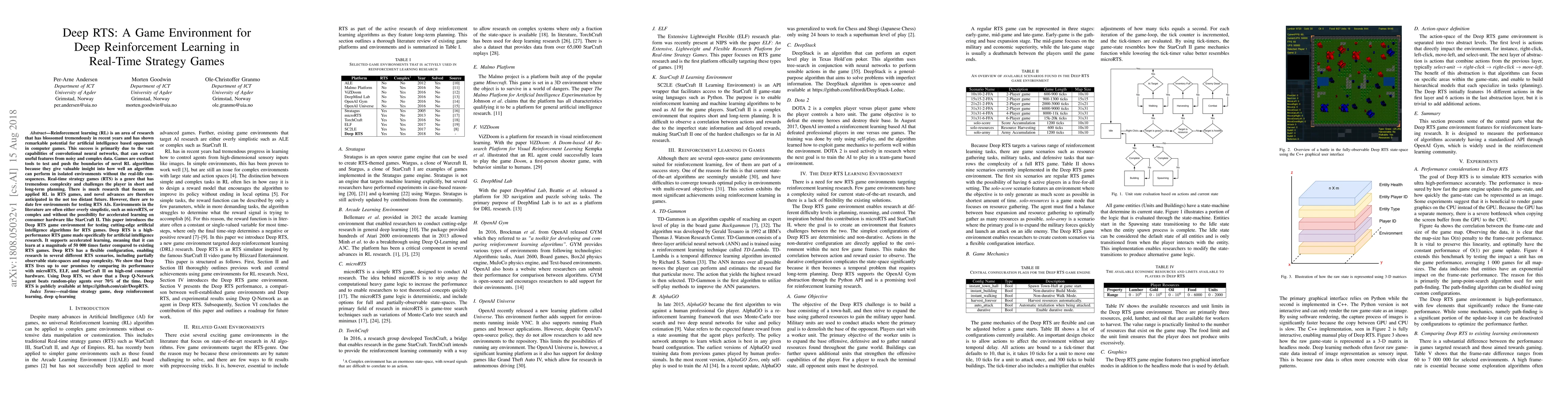 This paper introduces Deep RTS, an advanced real-time strategy game environment specifically designed for testing deep reinforcement learning algorithms. It supports accelerated learning and offers flexibility in configuring various RTS scenarios, demonstrating superior performance compared to existing environments like microRTS, ELF, and StarCraft II.