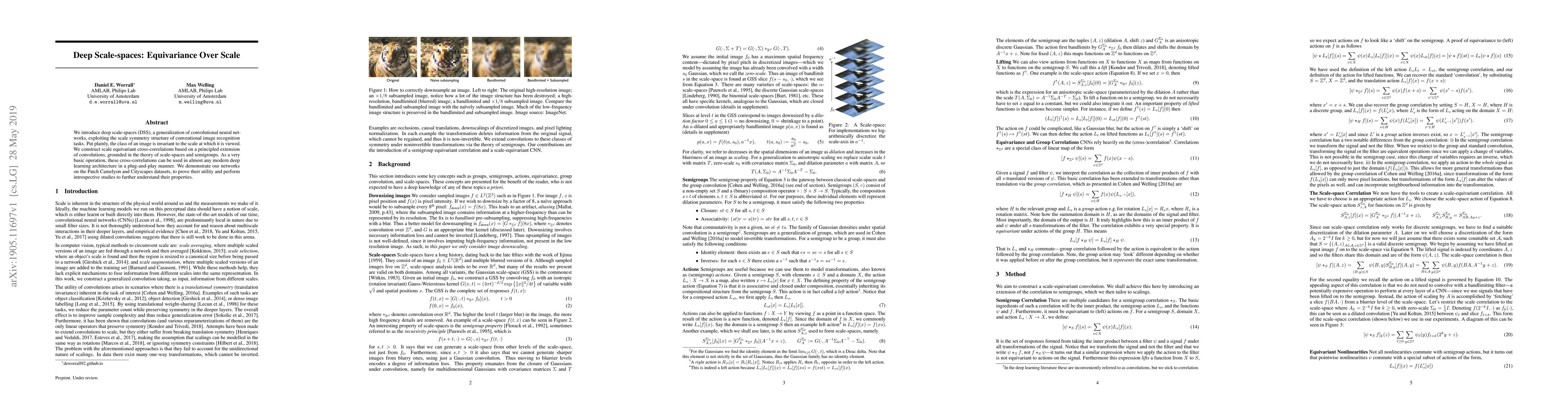 This paper introduces deep scale-spaces (DSS), a novel extension of convolutional neural networks that leverages scale symmetry in image recognition tasks. The proposed scale equivariant cross-correlations can be seamlessly integrated into existing deep learning architectures, demonstrated through successful applications on the Patch Camelyon and Cityscapes datasets.