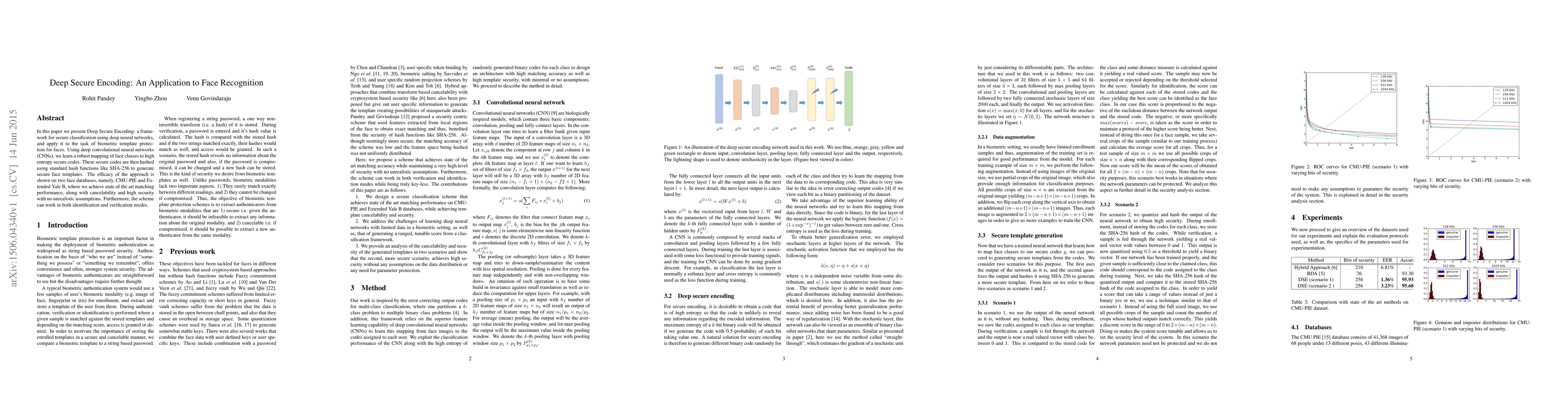 This paper introduces Deep Secure Encoding, a framework leveraging deep convolutional neural networks for secure face recognition. It generates high entropy secure codes for face templates, which are then hashed for robust biometric protection, achieving state-of-the-art performance on CMU-PIE and Extended Yale B databases.