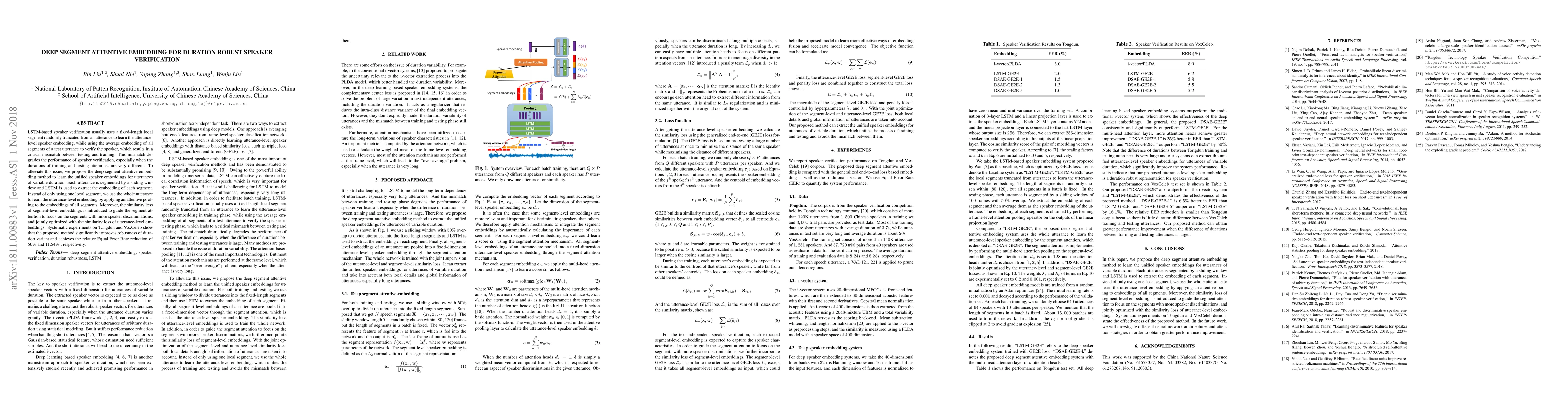 This paper proposes a deep segment attentive embedding method to improve speaker verification robustness for variable-length utterances. It uses LSTM to segment and embed each part of an utterance, then applies attentive pooling to learn a unified speaker embedding, significantly reducing the Equal Error Rate by 50% on Tongdun and 11.54% on VoxCeleb datasets.