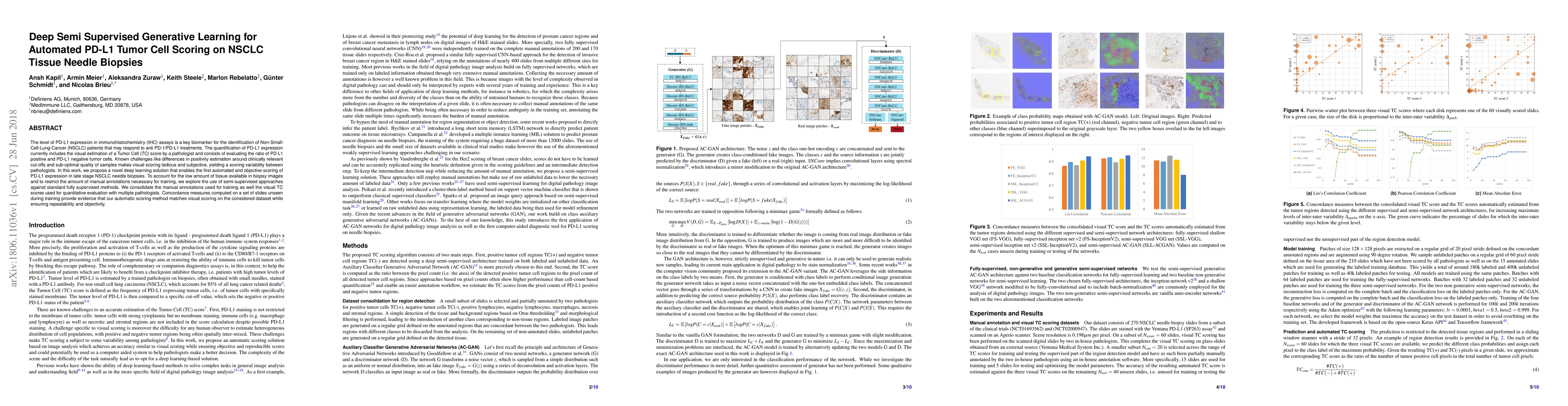This paper proposes a novel deep semi-supervised learning approach for automated PD-L1 tumor cell scoring in NSCLC tissue biopsies, aiming to reduce the subjectivity and variability in current manual scoring methods. The method demonstrates comparable accuracy to pathologists' visual scores while ensuring repeatability and objectivity.
