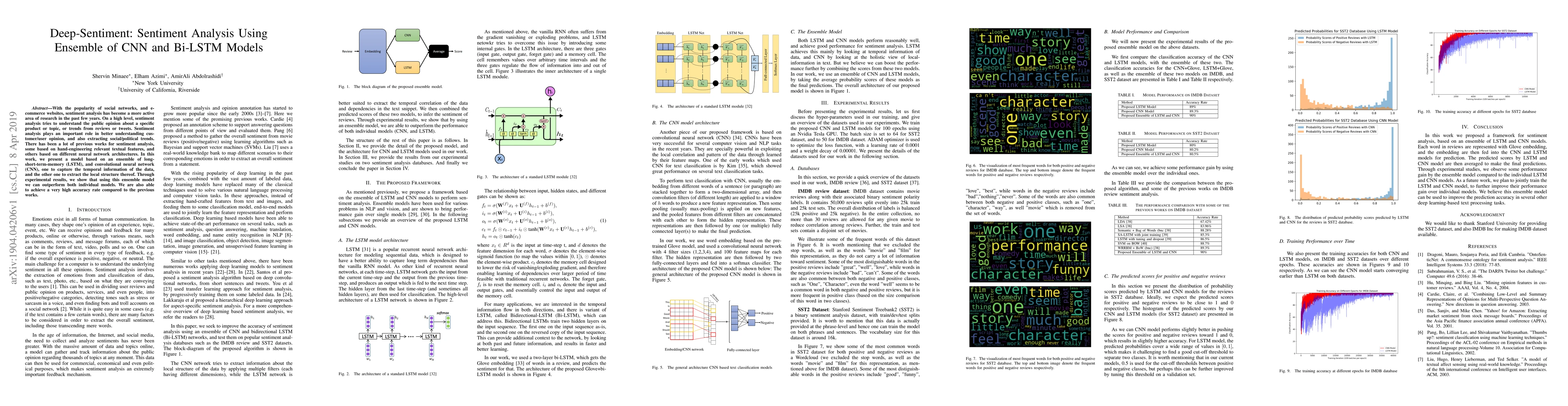 This research paper proposes an ensemble model combining Convolutional Neural Networks (CNN) and Bi-directional Long Short-Term Memory networks (Bi-LSTM) for enhanced sentiment analysis. The model aims to capture both temporal and local textual structures, achieving superior performance and accuracy compared to individual models and previous works. For detailed insights, refer directly to the original publication.