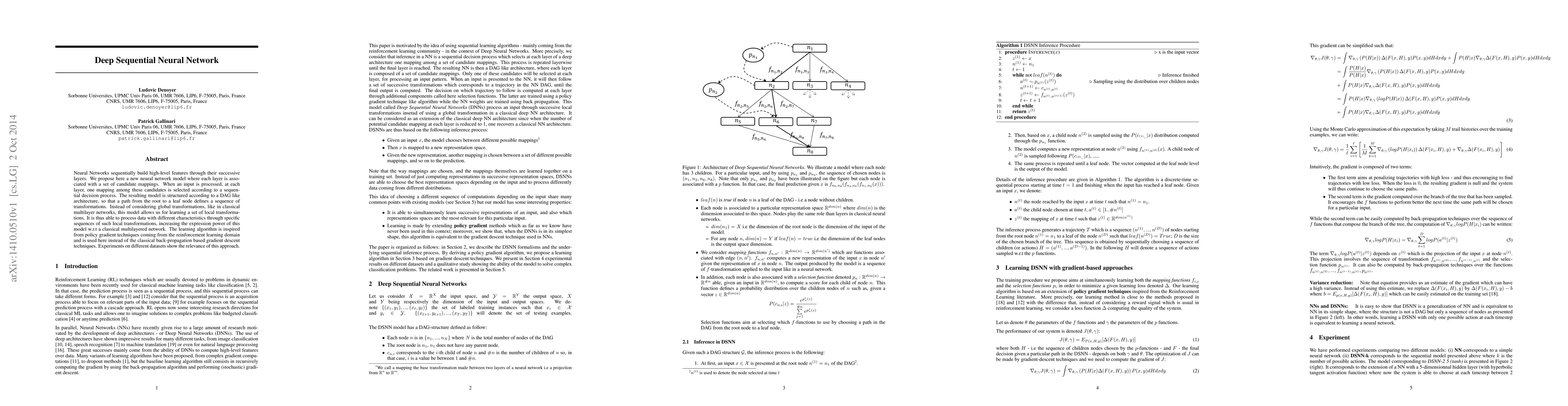 Neural Networks sequentially build high-level features through their successive layers. We propose here a new neural network model where each layer is associated with a set of candidate mappings. When an input is processed, at each layer, one mapping among these candidates is selected according to a sequential decision process. The resulting model is structured according to a DAG like architecture, so that a path from the root to a leaf node defines a sequence of transformations. Instead of considering global transformations, like in classical multilayer networks, this model allows us for learning a set of local transformations. It is thus able to process data with different characteristics through specific sequences of such local transformations, increasing the expression power of this model w.r.t a classical multilayered network. The learning algorithm is inspired from policy gradient techniques coming from the reinforcement learning domain and is used here instead of the classical back-propagation based gradient descent techniques. Experiments on different datasets show the relevance of this approach.