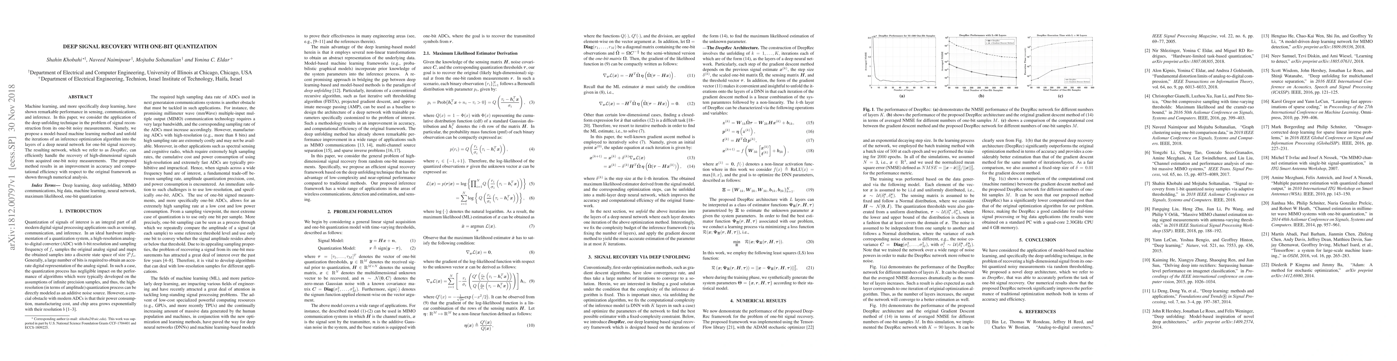 This paper proposes DeepRec, a deep neural network model based on the deep unfolding technique for reconstructing high-dimensional signals from one-bit noisy measurements. The method demonstrates improved accuracy and computational efficiency compared to traditional frameworks.