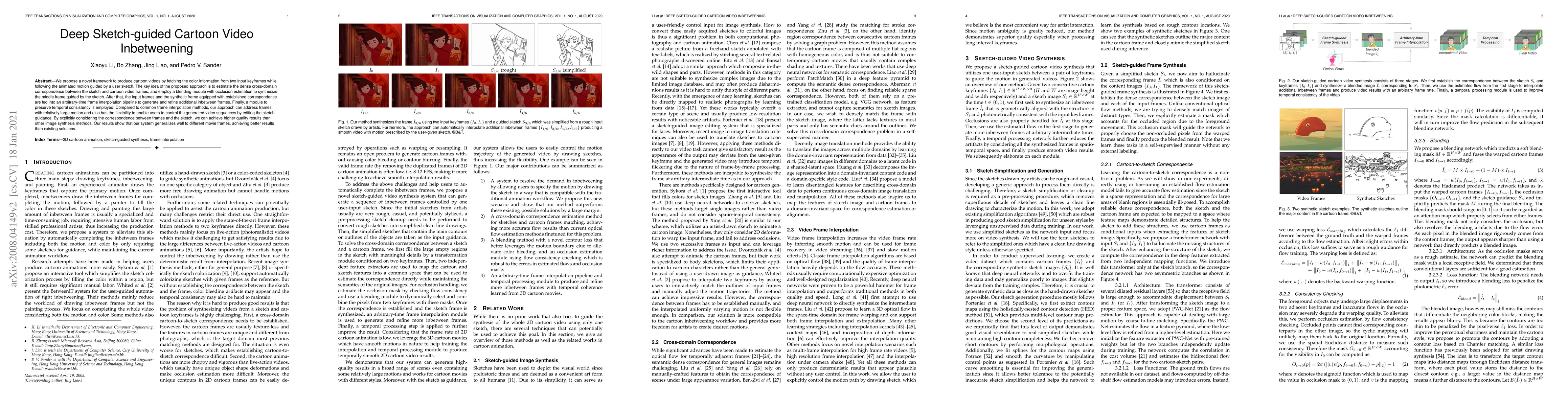 This paper introduces a framework for generating cartoon video inbetween frames by using a user sketch and keyframes, achieving high-quality results through dense cross-domain correspondence estimation and temporal consistency preservation. The method outperforms existing frame interpolation techniques by allowing user-guided motion control and handling large frame motions.