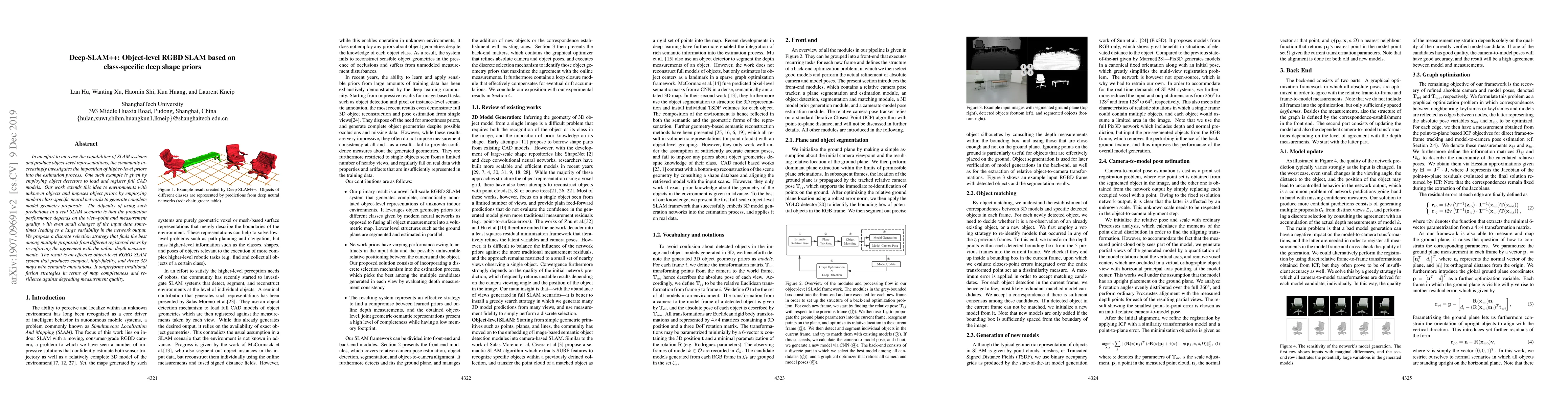 This paper proposes an advanced object-level RGBD SLAM system that leverages class-specific deep shape priors to generate and select model geometry proposals. It achieves high-fidelity 3D maps with semantic annotations, outperforming traditional methods in map completeness and resilience to measurement variability.