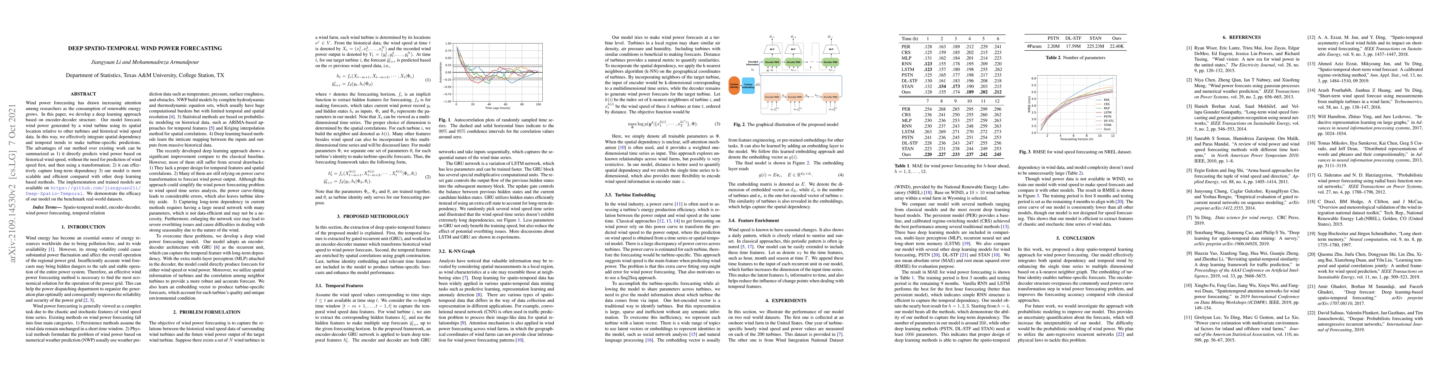 This paper proposes a deep learning model for wind power forecasting that uses an encoder-decoder structure to predict wind power directly from historical wind speed data, integrating spatial and temporal dependencies. The model outperforms existing methods by directly predicting wind power, capturing long-term dependencies, and offering scalability and efficiency.