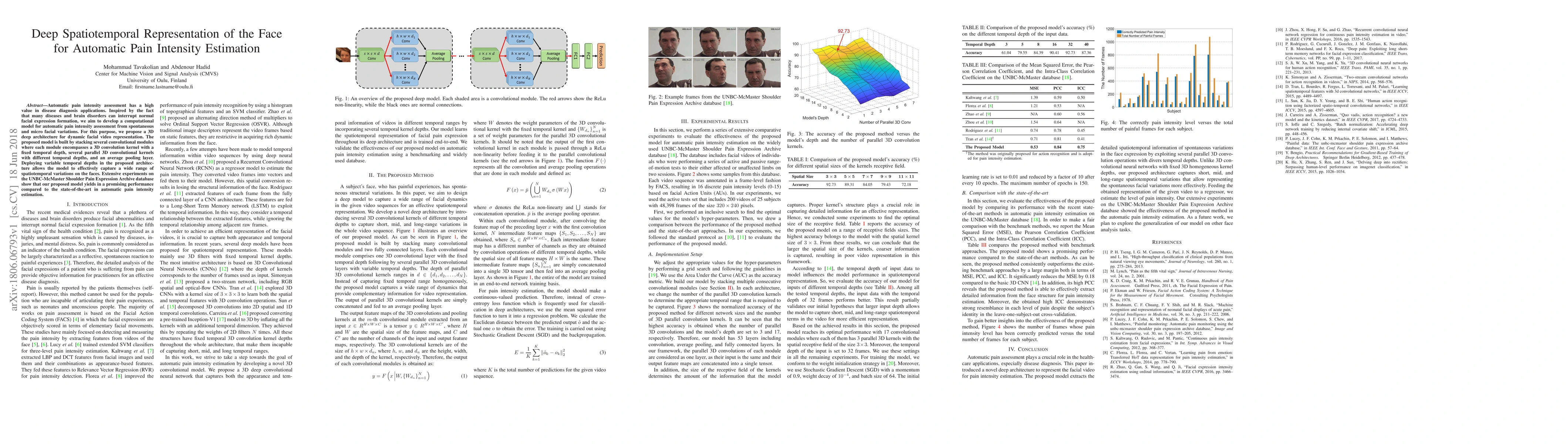 This paper proposes a 3D deep convolutional architecture for automatic pain intensity estimation from facial videos, utilizing dynamic spatiotemporal facial representations. The model's variable temporal depths enable it to capture a wide range of facial variations, achieving promising results compared to state-of-the-art methods.