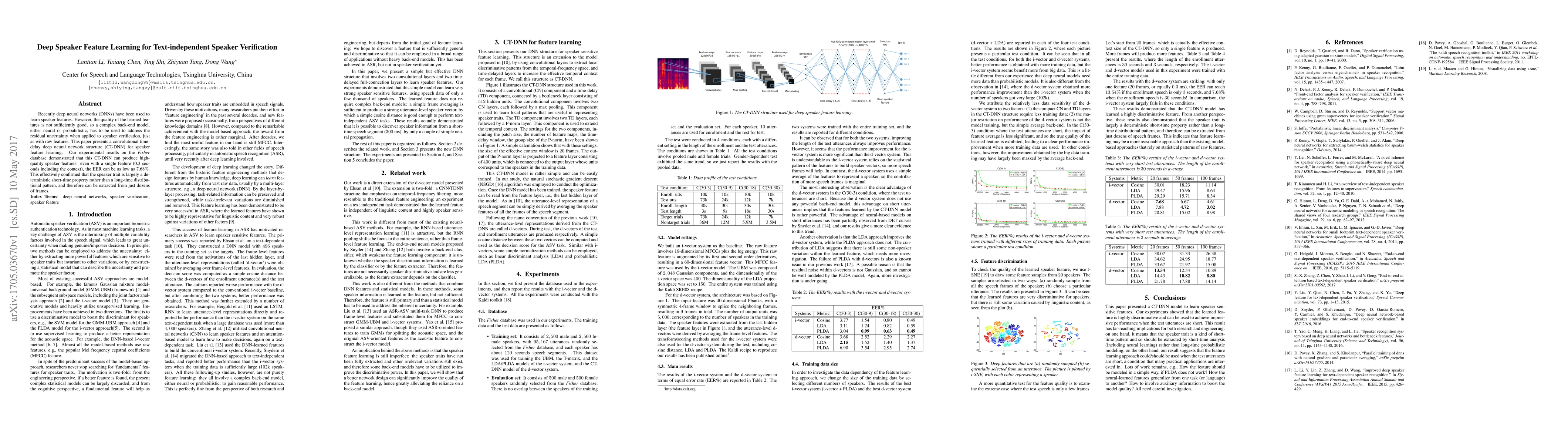 This paper introduces a convolutional time-delay deep neural network (CT-DNN) for learning high-quality speaker features in text-independent speaker verification. Experimental results on the Fisher database show that the CT-DNN achieves a low equal error rate (EER) of 7.68%, indicating that speaker traits can be effectively extracted from short-time frames.