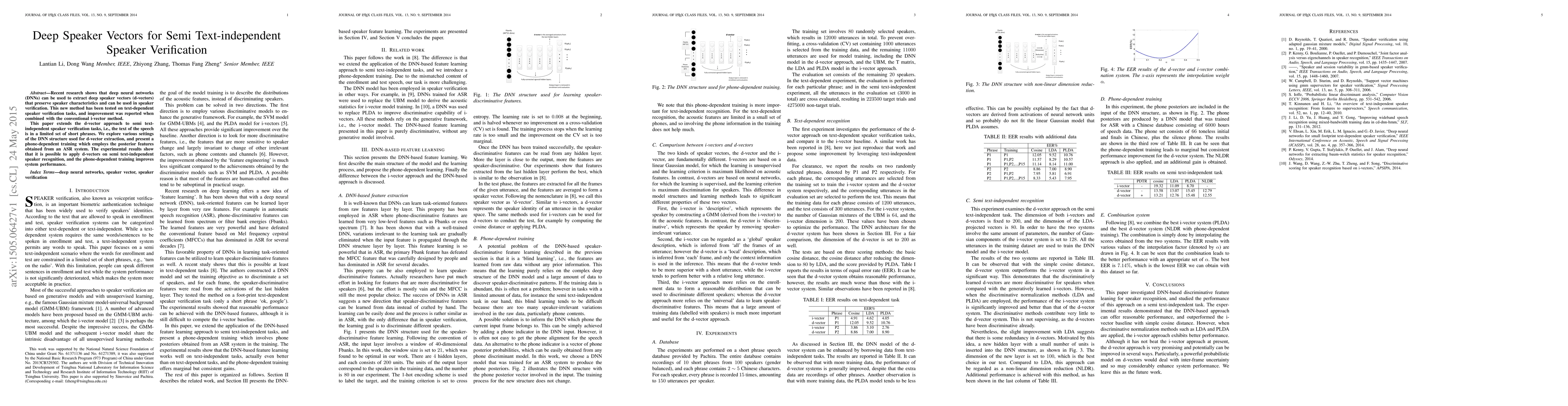 This paper explores the application of deep speaker vectors (d-vectors) for semi text-independent speaker verification, demonstrating improved performance through phone-dependent training using posterior features from an ASR system. The results indicate that d-vectors are effective in this context, extending their utility beyond text-dependent tasks.