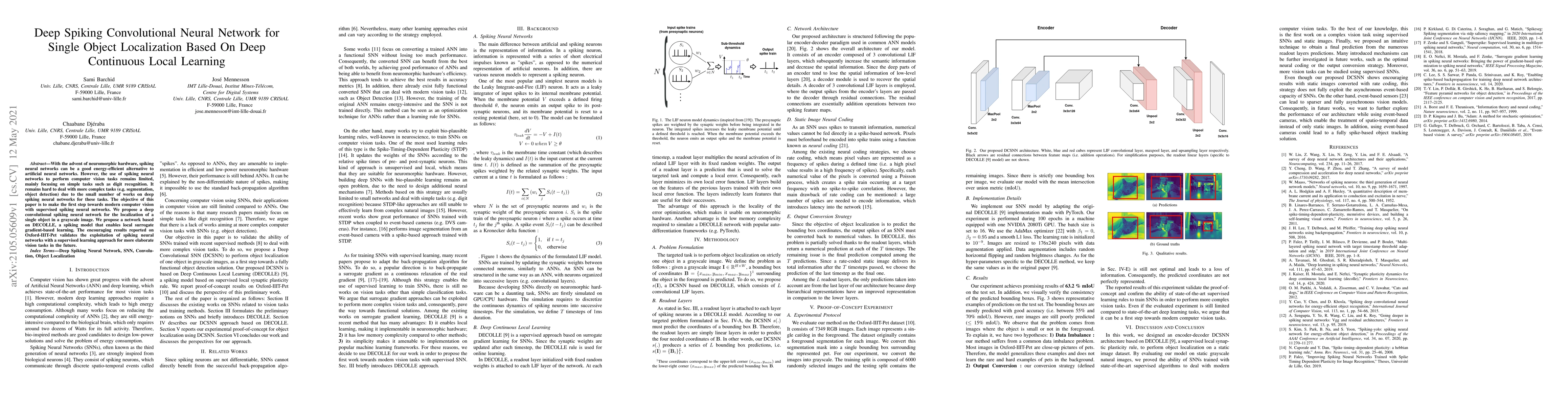 This paper proposes a deep convolutional spiking neural network for single object localization in grayscale images, leveraging DECOLLE for local learning. The results on the Oxford-IIIT-Pet dataset demonstrate the potential of spiking neural networks for more complex computer vision tasks.