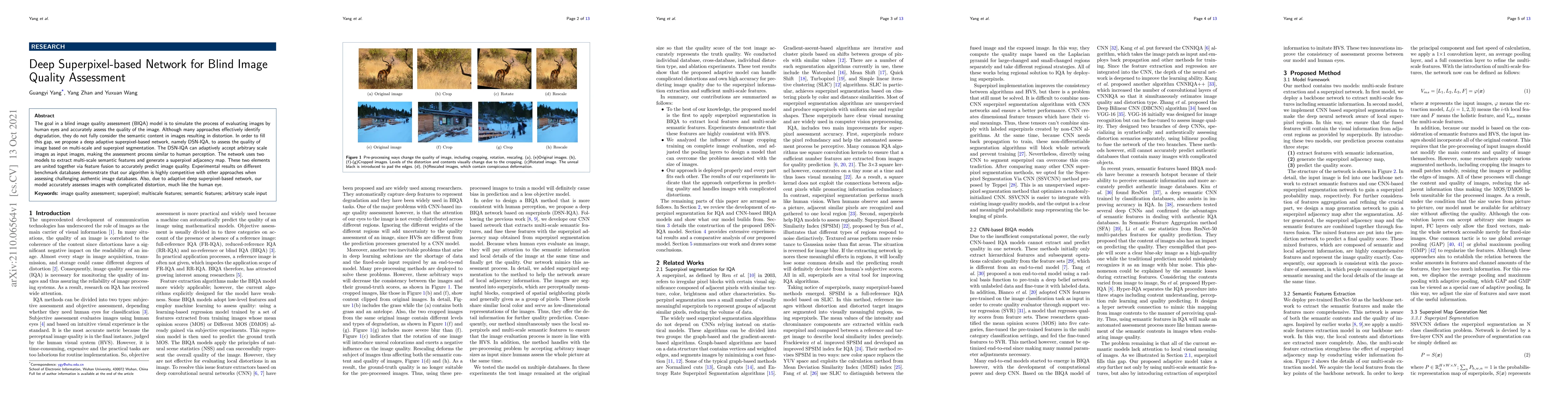 This paper proposes a deep superpixel-based network, DSN-IQA, for blind image quality assessment that uses multi-scale semantic features and superpixel segmentation to simulate human perception. The model accurately predicts image quality and performs competitively on challenging datasets.