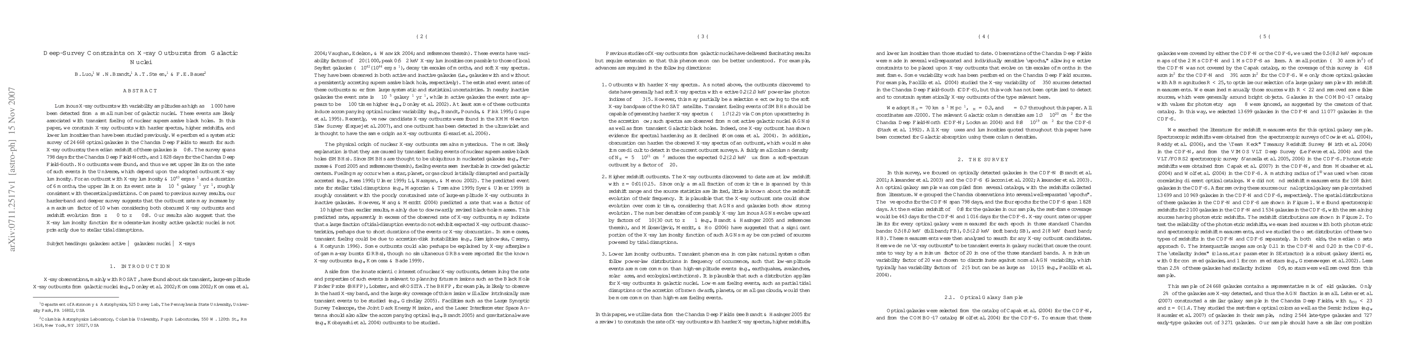 This paper reports a deep survey of 24,668 optical galaxies in the Chandra Deep Fields to detect X-ray outbursts from galactic nuclei, finding no such events and setting upper limits on their rate. The survey suggests the outburst rate may increase by up to a factor of 10 when considering obscured outbursts and redshift evolution.