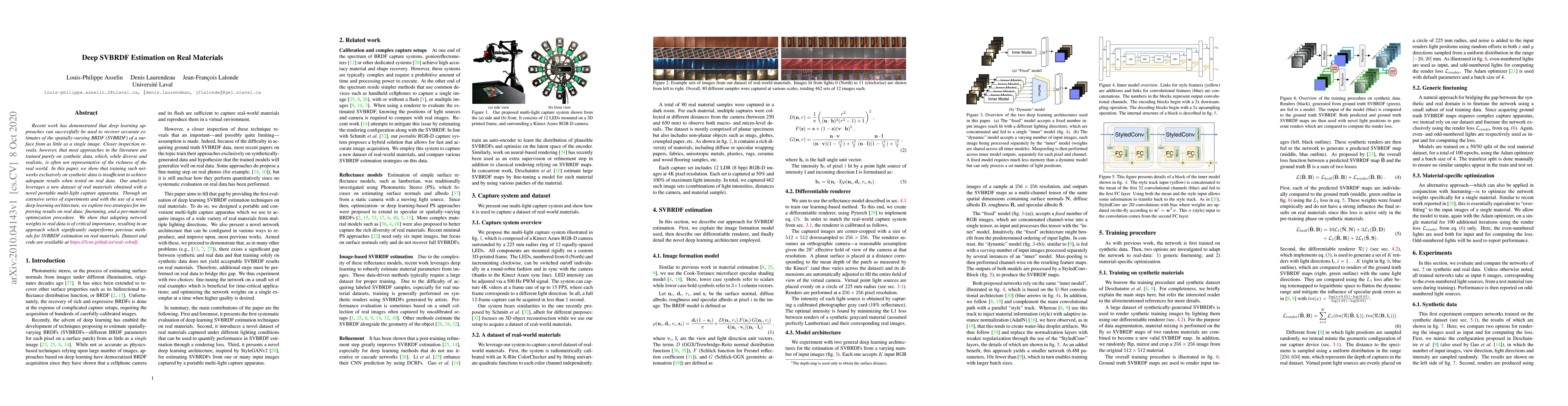 Recent work has demonstrated that deep learning approaches can successfully be used to recover accurate estimates of the spatially-varying BRDF (SVBRDF) of a surface from as little as a single image. Closer inspection reveals, however, that most approaches in the literature are trained purely on synthetic data, which, while diverse and realistic, is often not representative of the richness of the real world. In this paper, we show that training such networks exclusively on synthetic data is insufficient to achieve adequate results when tested on real data. Our analysis leverages a new dataset of real materials obtained with a novel portable multi-light capture apparatus. Through an extensive series of experiments and with the use of a novel deep learning architecture, we explore two strategies for improving results on real data: finetuning, and a per-material optimization procedure. We show that adapting network weights to real data is of critical importance, resulting in an approach which significantly outperforms previous methods for SVBRDF estimation on real materials. Dataset and code are available at https://lvsn.github.io/real-svbrdf