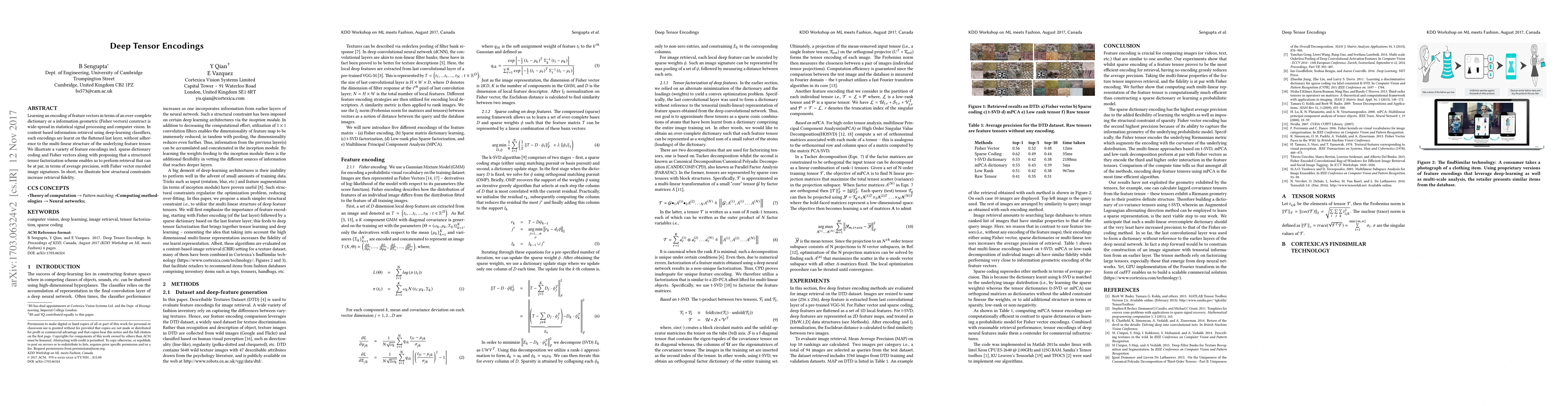 Learning an encoding of feature vectors in terms of an over-complete dictionary or a information geometric (Fisher vectors) construct is wide-spread in statistical signal processing and computer vision. In content based information retrieval using deep-learning classifiers, such encodings are learnt on the flattened last layer, without adherence to the multi-linear structure of the underlying feature tensor. We illustrate a variety of feature encodings incl. sparse dictionary coding and Fisher vectors along with proposing that a structured tensor factorization scheme enables us to perform retrieval that can be at par, in terms of average precision, with Fisher vector encoded image signatures. In short, we illustrate how structural constraints increase retrieval fidelity.
