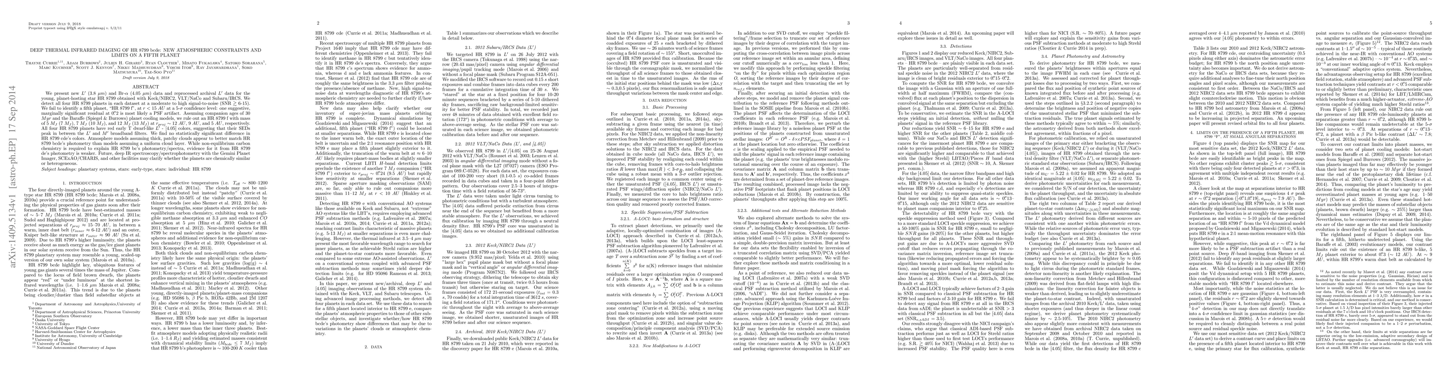 We present new $L^\prime$ (3.8 $\mu m$) and Br-$\alpha$ (4.05 $\mu m$) data and reprocessed archival $L^\prime$ data for the young, planet-hosting star HR 8799 obtained with Keck/NIRC2, VLT/NaCo and Subaru/IRCS. We detect all four HR 8799 planets in each dataset at a moderate to high signal-to-noise (SNR $\gtrsim$ 6-15). We fail to identify a fifth planet, "HR 8799 f", at $r$ $<$ 15 $AU$ at a 5-$\sigma$ confidence level: one suggestive, marginally significant residual at 0.2" is most likely a PSF artifact. Assuming companion ages of 30 $Myr$ and the Baraffe (Spiegel \& Burrows) planet cooling models, we rule out an HR 8799 f with mass of 5 $M_{J}$ (7 $M_{J}$), 7 $M_{J}$ (10 $M_{J}$), and 12 $M_{J}$ (13 $M_{J}$) at $r_{proj}$ $\sim$ 12 $AU$, 9 $AU$, and 5 $AU$, respectively. All four HR 8799 planets have red early T dwarf-like $L^\prime$ - [4.05] colors, suggesting that their SEDs peak in between the $L^\prime$ and $M^\prime$ broadband filters. We find no statistically significant difference in HR 8799 cde's colors. Atmosphere models assuming thick, patchy clouds appear to better match HR 8799 bcde's photometry than models assuming a uniform cloud layer. While non-equilibrium carbon chemistry is required to explain HR 8799 bc's photometry/spectra, evidence for it from HR 8799 de's photometry is weaker. Future, deep IR spectroscopy/spectrophotometry with the Gemini Planet Imager, SCExAO/CHARIS, and other facilities may clarify whether the planets are chemically similar or heterogeneous.