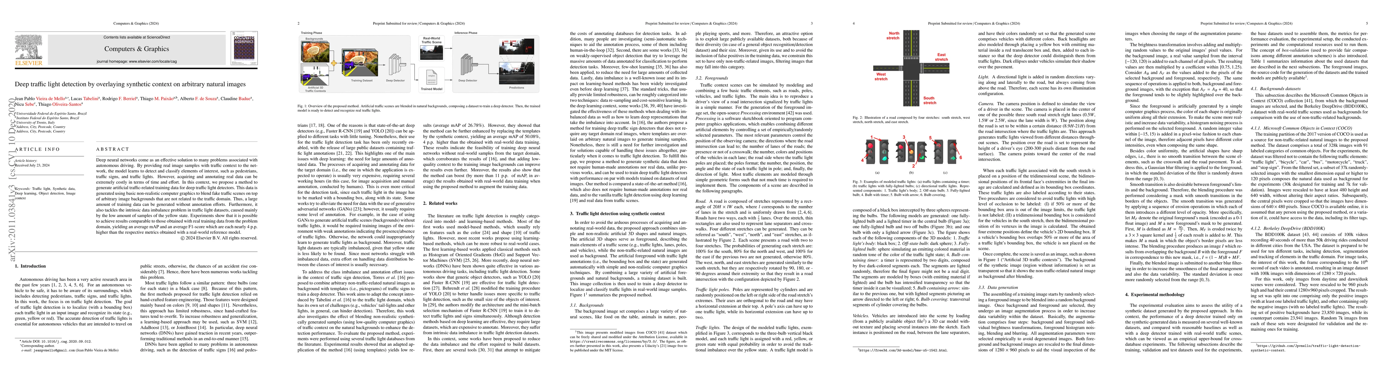 Deep neural networks come as an effective solution to many problems associated with autonomous driving. By providing real image samples with traffic context to the network, the model learns to detect and classify elements of interest, such as pedestrians, traffic signs, and traffic lights. However, acquiring and annotating real data can be extremely costly in terms of time and effort. In this context, we propose a method to generate artificial traffic-related training data for deep traffic light detectors. This data is generated using basic non-realistic computer graphics to blend fake traffic scenes on top of arbitrary image backgrounds that are not related to the traffic domain. Thus, a large amount of training data can be generated without annotation efforts. Furthermore, it also tackles the intrinsic data imbalance problem in traffic light datasets, caused mainly by the low amount of samples of the yellow state. Experiments show that it is possible to achieve results comparable to those obtained with real training data from the problem domain, yielding an average mAP and an average F1-score which are each nearly 4 p.p. higher than the respective metrics obtained with a real-world reference model.