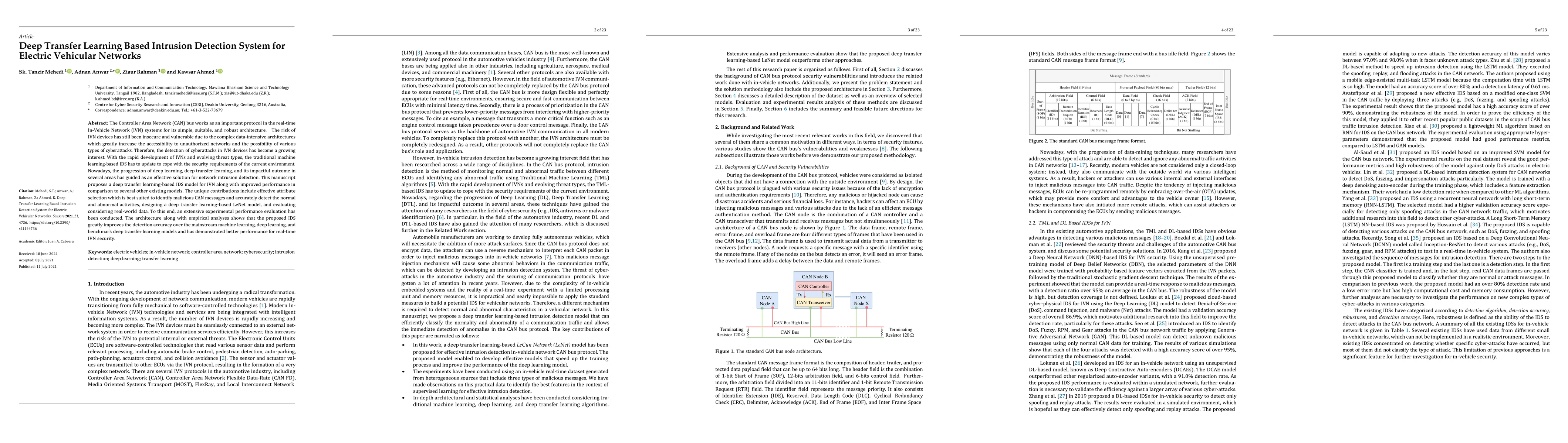 This paper proposes a deep transfer learning-based intrusion detection system for In-Vehicle Network (IVN) devices, utilizing a LeNet model to enhance detection accuracy of cyberattacks. The model's performance is superior to traditional machine learning and other deep learning approaches, validated through real-world data.