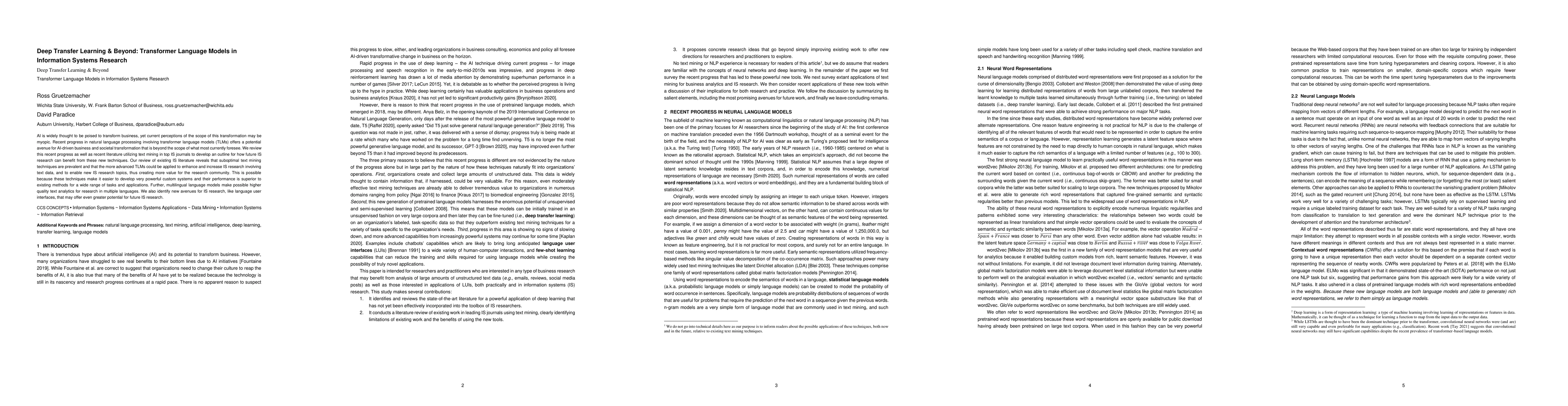 This paper reviews the transformative potential of transformer language models (TLMs) in information systems (IS) research, highlighting the superiority of TLMs over existing text mining techniques. It suggests that TLMs can enhance current IS research and enable new research topics, ultimately creating more value for the IS research community.