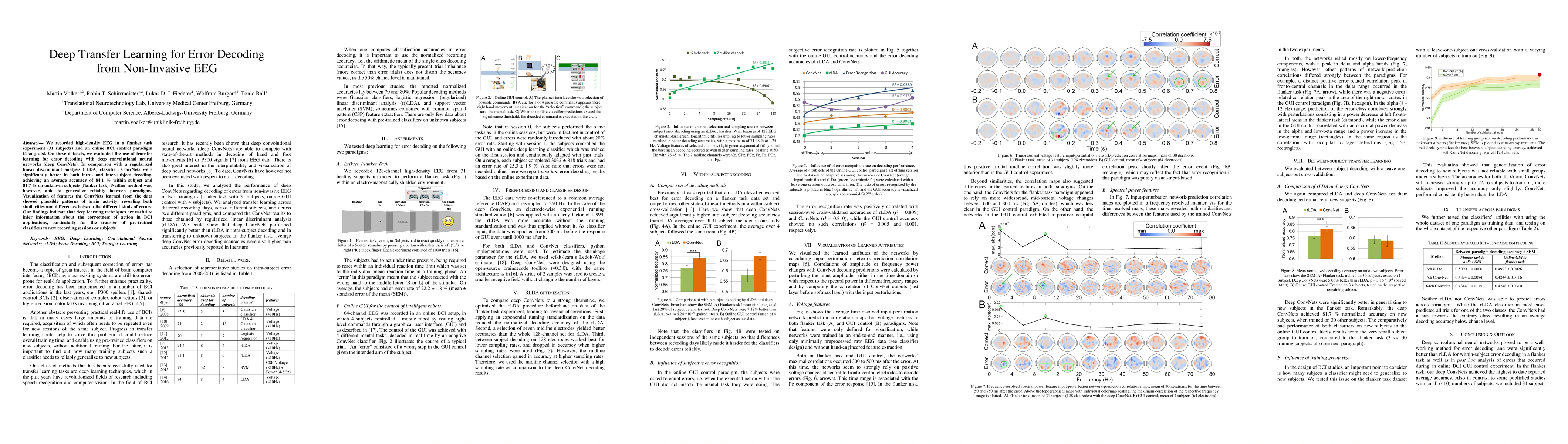 This study demonstrates that deep convolutional neural networks (ConvNets) outperform regularized linear discriminant analysis (rLDA) in decoding errors from non-invasive EEG data in both intra- and inter-subject settings, achieving higher accuracy. However, neither method reliably generalizes across different experimental paradigms.