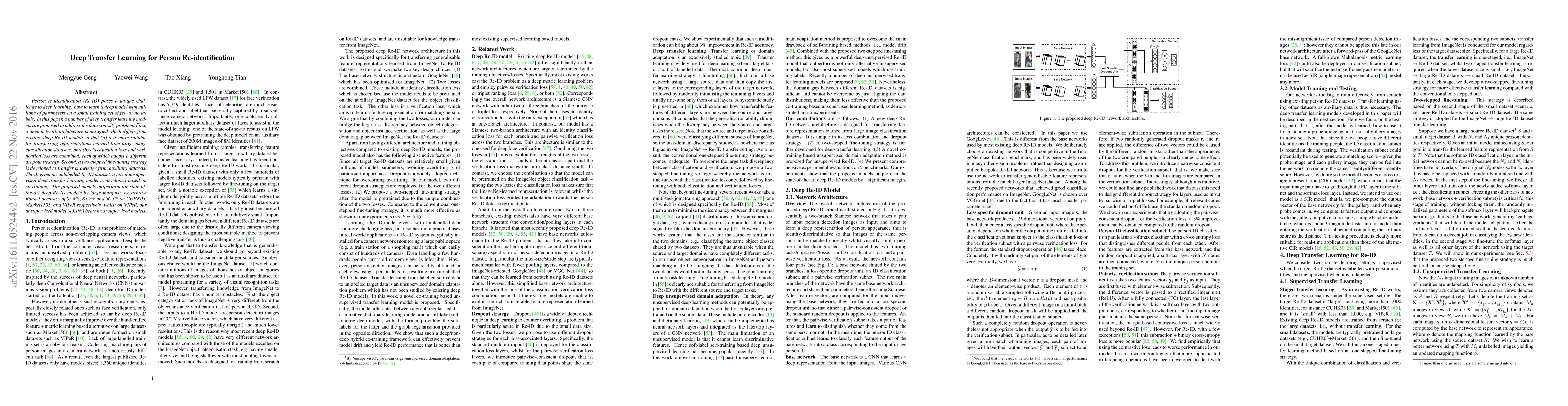 This paper proposes deep transfer learning models to tackle the data sparsity issue in person re-identification, achieving superior performance on multiple datasets. The models combine classification and verification losses with tailored dropout strategies and utilize fine-tuning and co-training techniques to outperform existing state-of-the-art methods.