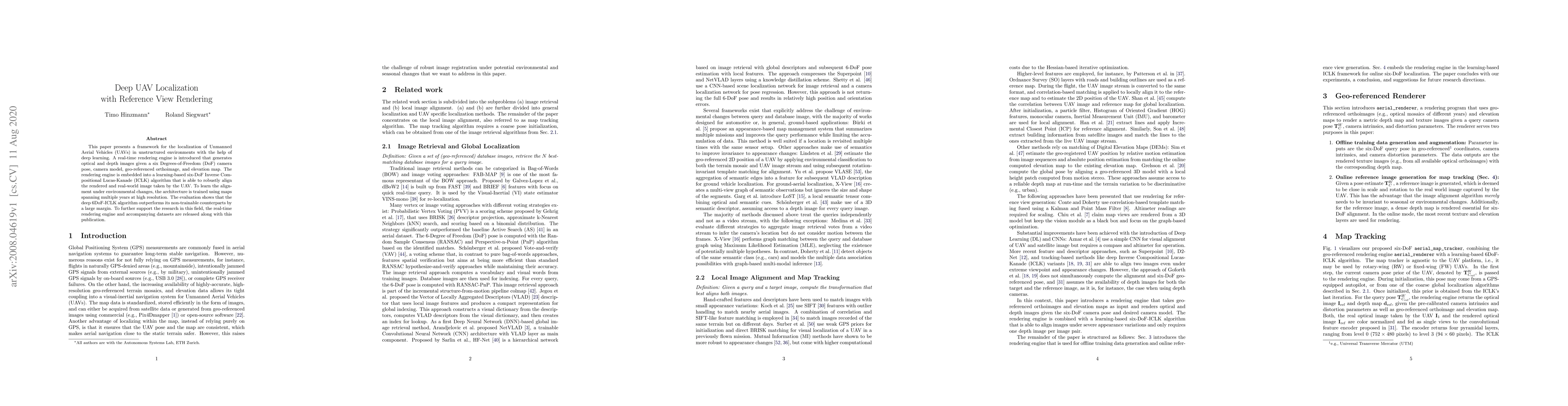 This paper introduces a deep learning framework for UAV localization in unstructured environments, utilizing a real-time rendering engine and a six-DoF Inverse Compositional Lucas-Kanade algorithm to robustly align rendered and real-world images. The method outperforms non-trainable counterparts and the engine and datasets are released for further research.