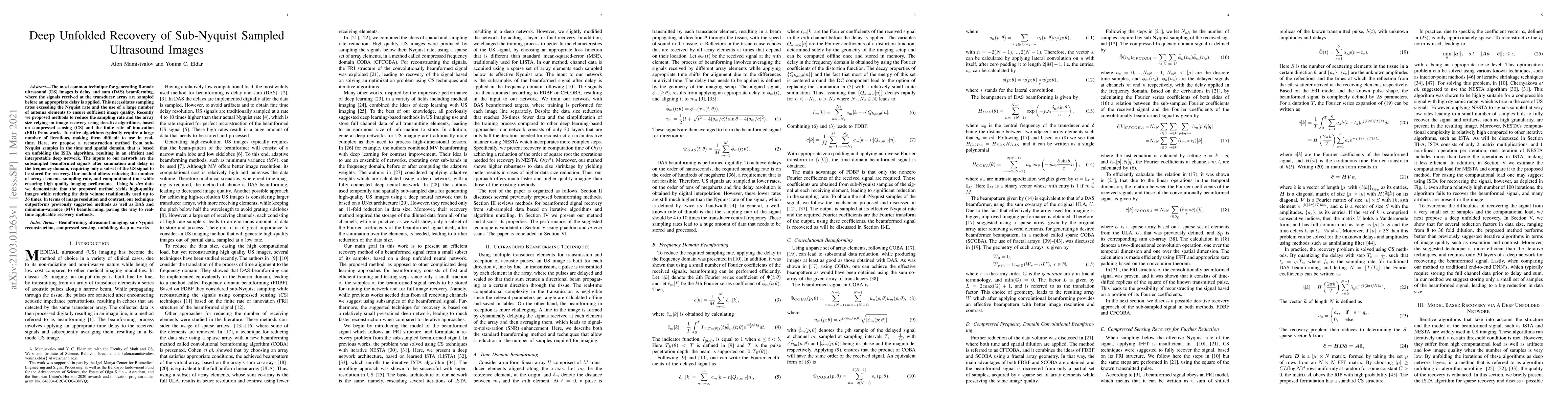 This paper proposes a deep network based on the unfolding of the ISTA algorithm for reconstructing high-quality ultrasound images from sub-Nyquist sampled data, significantly reducing the number of array elements and sampling rates while maintaining superior image resolution and contrast compared to traditional methods.