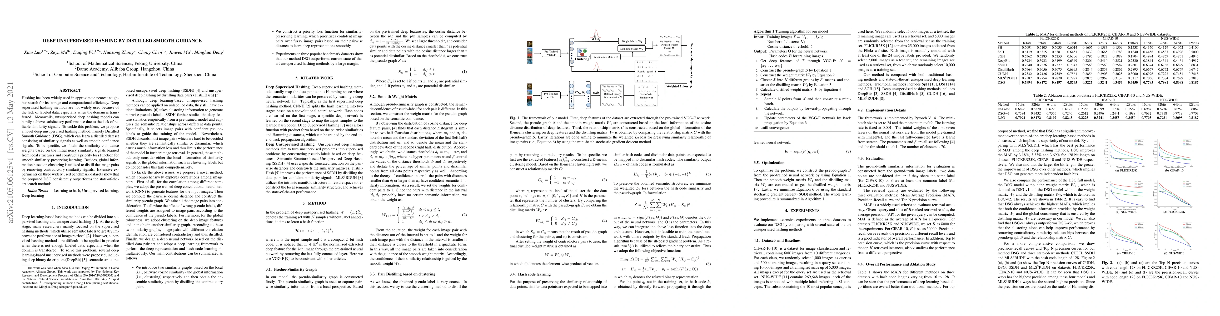 The paper proposes a novel deep unsupervised hashing method called Distilled Smooth Guidance (DSG) that learns similarity and confidence signals from unlabeled data to improve performance. DSG outperforms state-of-the-art methods in approximate nearest neighbor search on benchmark datasets.