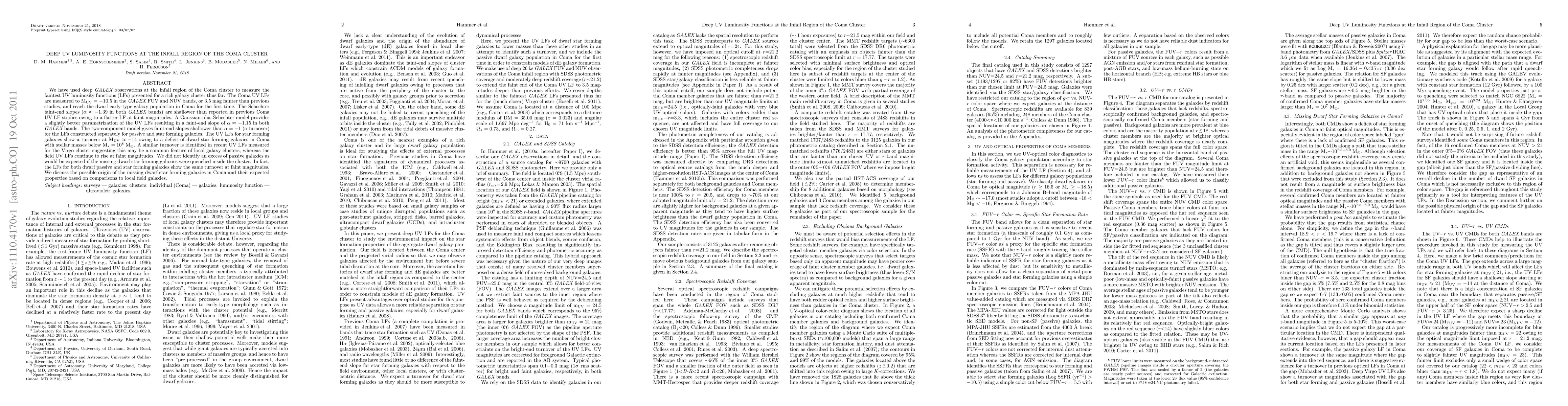 This study uses deep GALEX observations to measure the faintest UV luminosity functions (LFs) in the Coma cluster, reaching 3.5 mag fainter than previous studies. The LFs show shallower faint-end slopes and a turnover at M_UV ~ -14 for star-forming galaxies, suggesting a deficit of dwarf star-forming galaxies, a feature possibly common to local galaxy clusters.