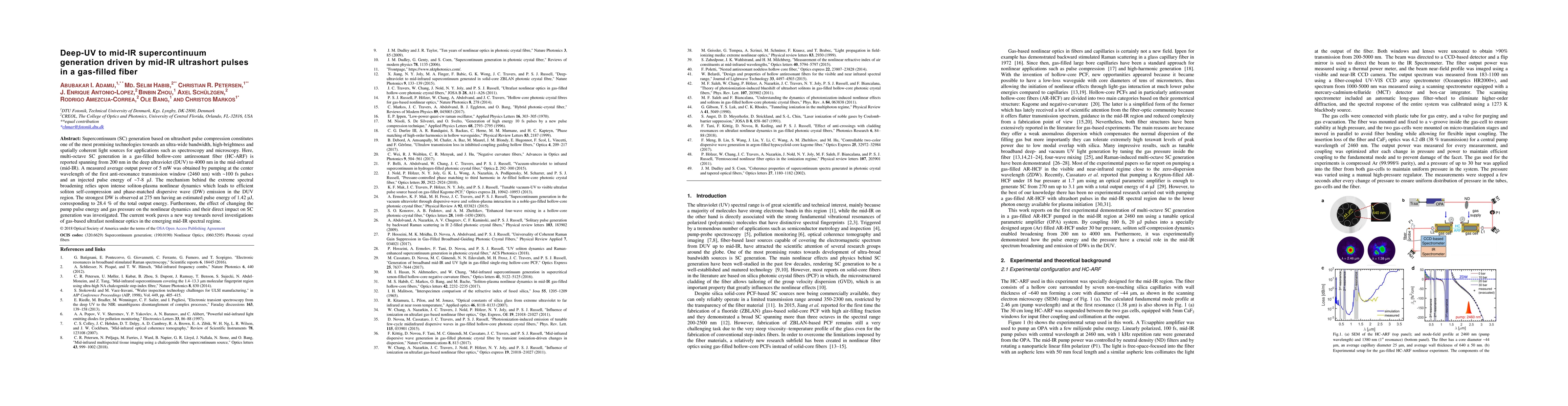 This paper reports on the generation of a multi-octave supercontinuum spanning from deep ultraviolet to mid-infrared using gas-filled hollow-core antiresonant fibers, driven by ultrashort mid-IR pulses. The study highlights the role of soliton-plasma dynamics in achieving extreme spectral broadening and investigates the influence of pump pulse energy and gas pressure on the nonlinear dynamics and supercontinuum generation.