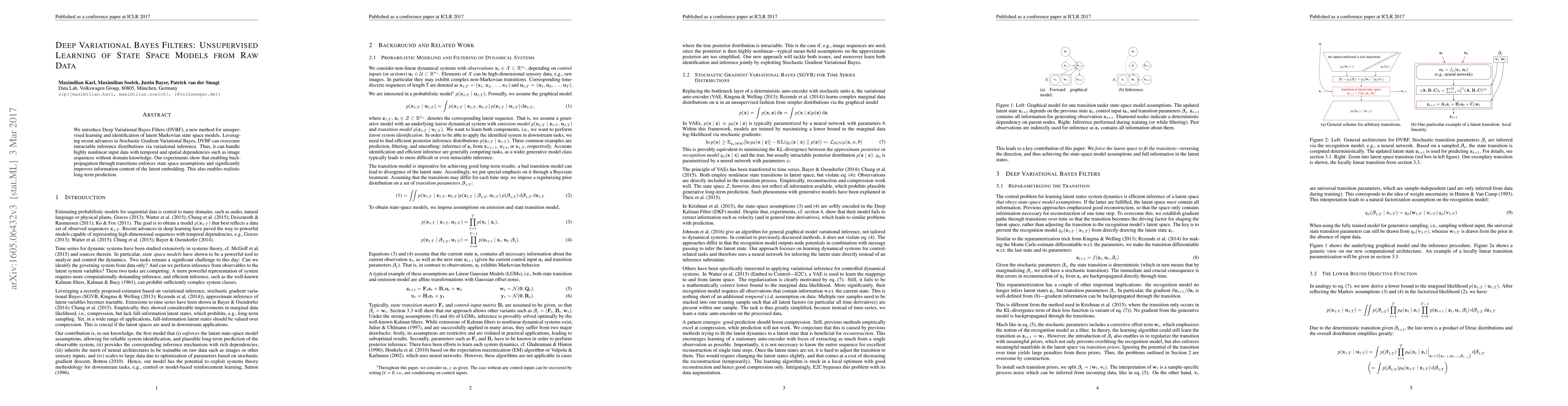 Deep Variational Bayes Filters (DVBF) enable unsupervised learning of latent Markovian state space models from raw data, leveraging Stochastic Gradient Variational Bayes to handle complex, nonlinear temporal data. Backpropagation through transitions enhances the latent embedding's information content, facilitating accurate long-term predictions.