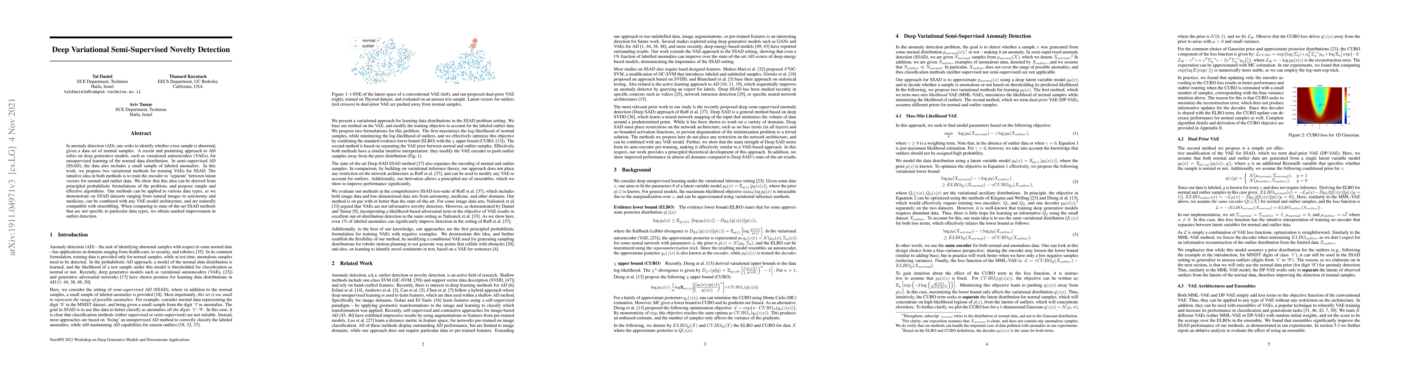 This paper proposes two variational methods for training VAEs to detect anomalies in semi-supervised data, achieving marked improvement over state-of-the-art methods on various datasets.