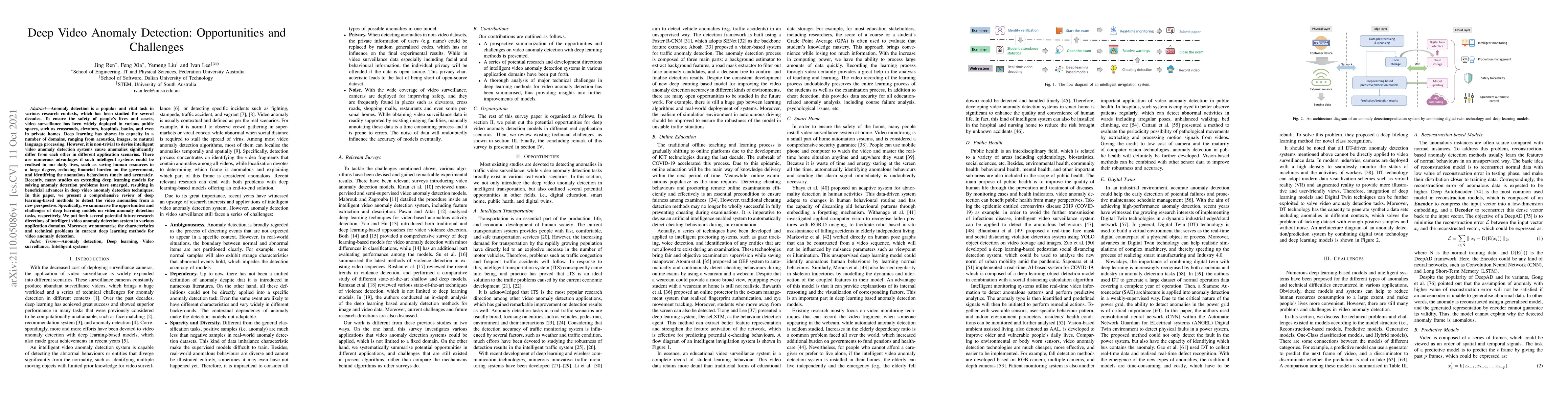 This paper reviews deep learning-based methods for detecting anomalies in video surveillance, highlighting both the opportunities and challenges of current techniques. It also outlines potential future research directions for intelligent video anomaly detection systems across various domains.