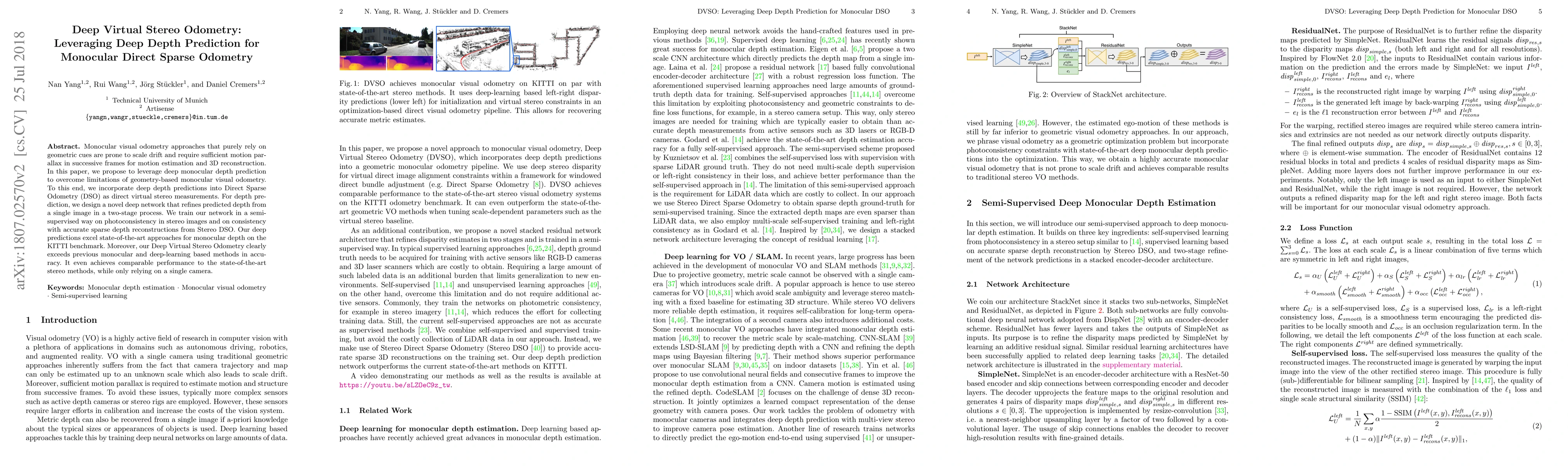 This paper proposes Deep Virtual Stereo Odometry, integrating deep monocular depth prediction with Direct Sparse Odometry to enhance monocular visual odometry accuracy, addressing scale drift and motion parallax limitations, and achieving performance comparable to stereo methods.