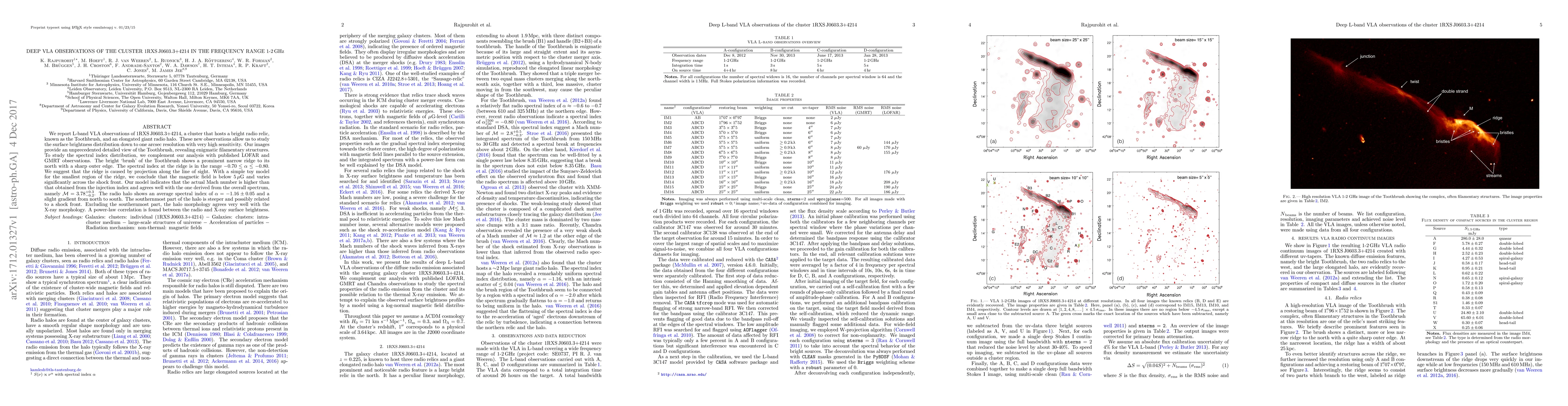 We report L-band VLA observations of 1RXS J0603.3+4214, a cluster that hosts a bright radio relic, known as the Toothbrush, and an elongated giant radio halo. These new observations allow us to study the surface brightness distribution down to one arcsec resolution with very high sensitivity. Our images provide an unprecedented detailed view of the Toothbrush, revealing enigmatic filamentary structures. To study the spectral index distribution, we complement our analysis with published LOFAR and GMRT observations. The bright `brush' of the Toothbrush shows a prominent narrow ridge to its north with a sharp outer edge. The spectral index at the ridge is in the range $-0.70\leq\alpha\leq-0.80$. We suggest that the ridge is caused by projection along the line of sight. With a simple toy model for the smallest region of the ridge, we conclude that the magnetic field is below $5\,\rm\mu G$ and varies significantly across the shock front. Our model indicates that the actual Mach number is higher than that obtained from the injection index and agrees well with the one derived from the overall spectrum, namely ${\cal M}=3.78^{+0.3}_{-0.2}$. The radio halo shows an average spectral index of $\alpha=-1.16\pm0.05$ and a slight gradient from north to south. The southernmost part of the halo is steeper and possibly related to a shock front. Excluding the southernmost part, the halo morphology agrees very well with the X-ray morphology. A power-law correlation is found between the radio and X-ray surface brightness