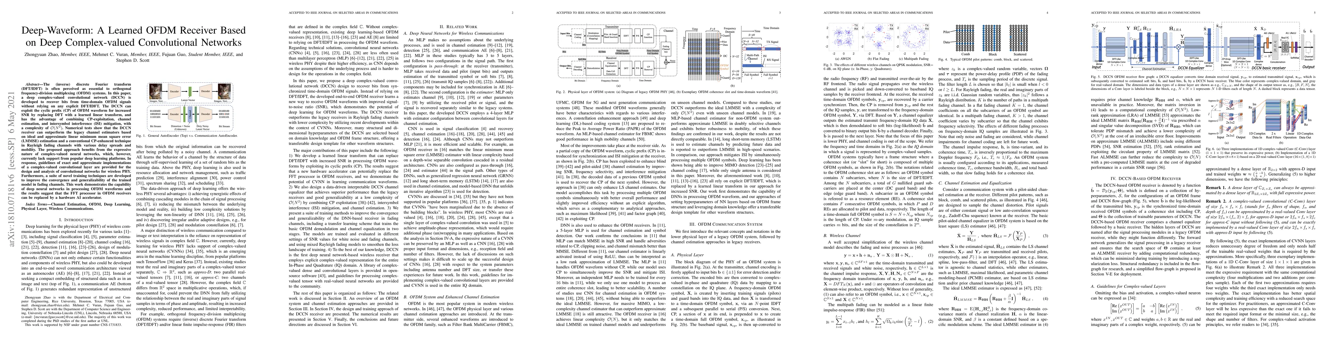 This paper proposes a deep complex-valued convolutional network (DCCN) to recover bits from time-domain OFDM signals without using DFT/IDFT, achieving superior performance over traditional channel estimators in Rayleigh fading channels. The DCCN leverages the cyclic prefix for enhanced SNR and integrates channel estimation and ISI mitigation, suggesting potential for replacing FFT processors in OFDM receivers with AI accelerators.