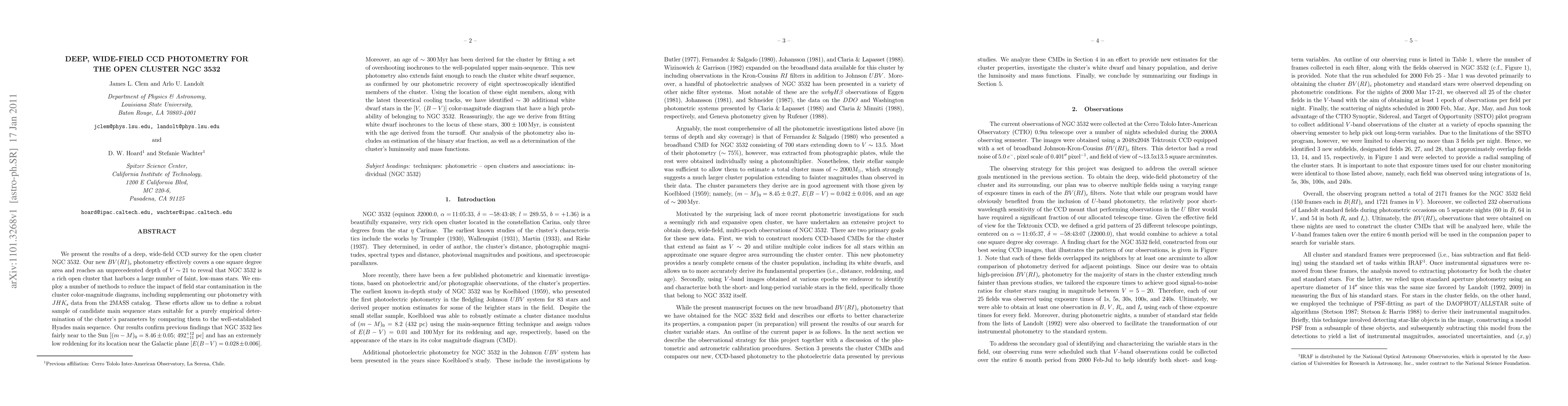 This research provides detailed photometric data for NGC 3532, enabling a precise determination of its distance, reddening, age, and binary fraction. The findings contribute to our understanding of open cluster properties, stellar evolution, and Galactic structure.