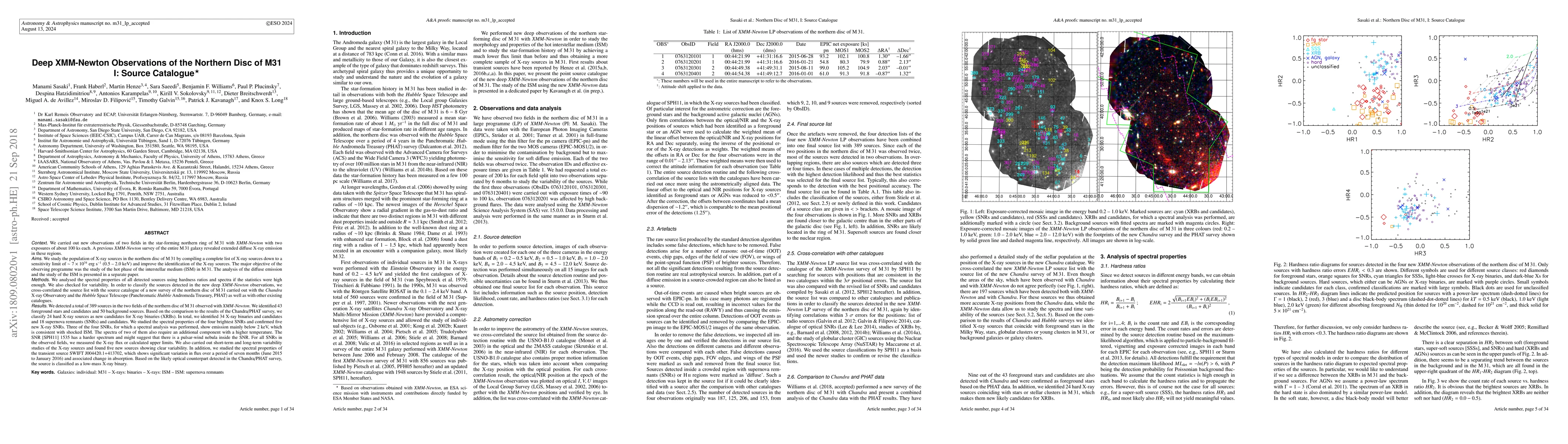 This study, using deep XMM-Newton observations of M31's northern disc, identified 389 X-ray sources, including 34 X-ray binaries and candidates, and 18 supernova remnants and candidates. Key findings involve variability in three sources, a new low-mass X-ray binary candidate, and diverse spectral properties in supernova remnants suggesting complex structures.