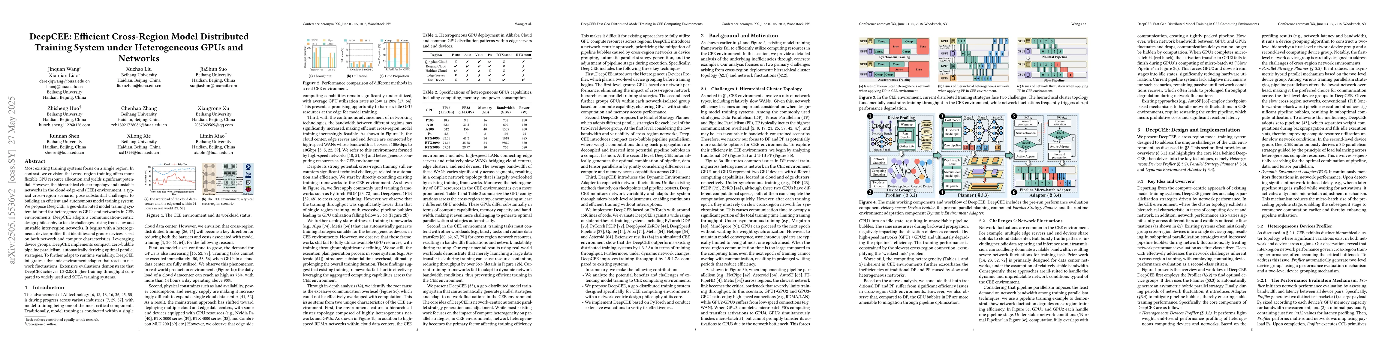 DeepCEE is a system for efficient model training on heterogeneous GPUs and networks across multiple regions, achieving 1.3-2.8x higher throughput than existing systems.