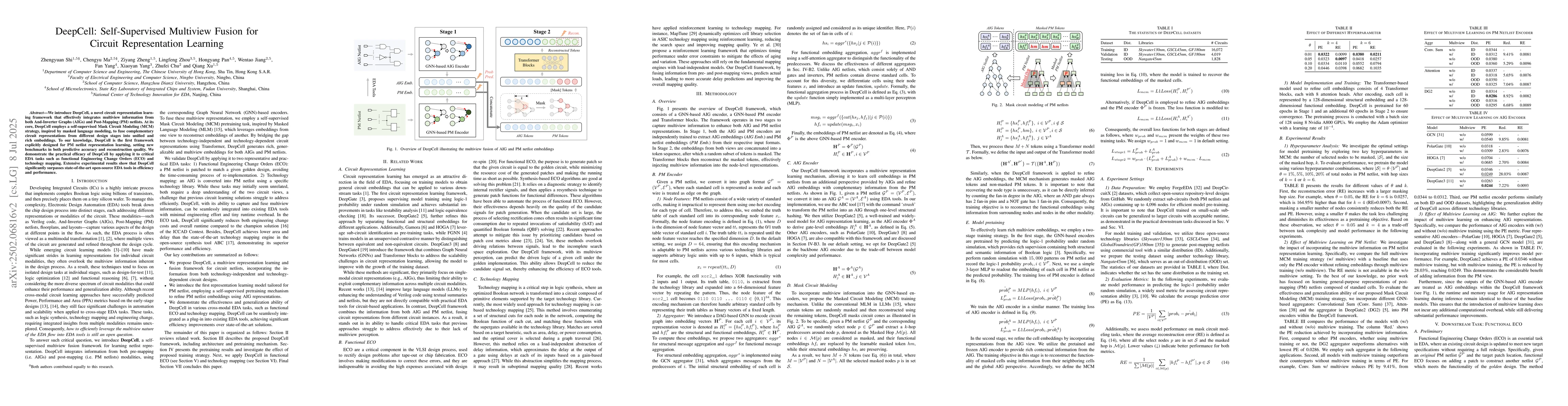 We introduce DeepCell, a novel circuit representation learning framework that effectively integrates multiview information from both And-Inverter Graphs (AIGs) and Post-Mapping (PM) netlists. At its core, DeepCell employs a self-supervised Mask Circuit Modeling (MCM) strategy, inspired by masked language modeling, to fuse complementary circuit representations from different design stages into unified and rich embeddings. To our knowledge, DeepCell is the first framework explicitly designed for PM netlist representation learning, setting new benchmarks in both predictive accuracy and reconstruction quality. We demonstrate the practical efficacy of DeepCell by applying it to critical EDA tasks such as functional Engineering Change Orders (ECO) and technology mapping. Extensive experimental results show that DeepCell significantly surpasses state-of-the-art open-source EDA tools in efficiency and performance.