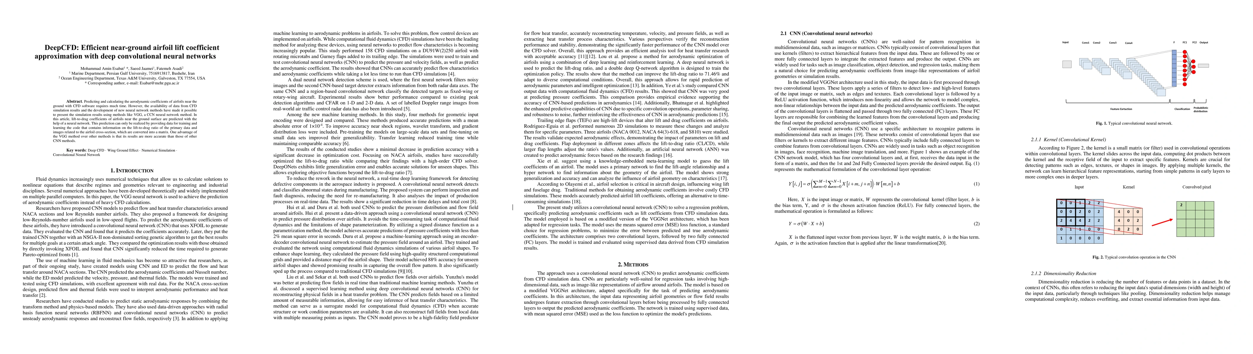 . Predicting and calculating the aerodynamic coefficients of airfoils near the ground with CFD software requires much time. However, the availability of data from CFD simulation results and the development of new neural network methods have made it possible to present the simulation results using methods like VGG, a CCN neural network method. In this article, lift-to-drag coefficients of airfoils near the ground surface are predicted with the help of a neural network. This prediction can only be realized by providing data for training and learning the code that contains information on the lift-to-drag ratio of the primary data and images related to the airfoil cross-section, which are converted into a matrix. One advantage of the VGG method over other methods is that its results are more accurate than those of other CNN methods.
