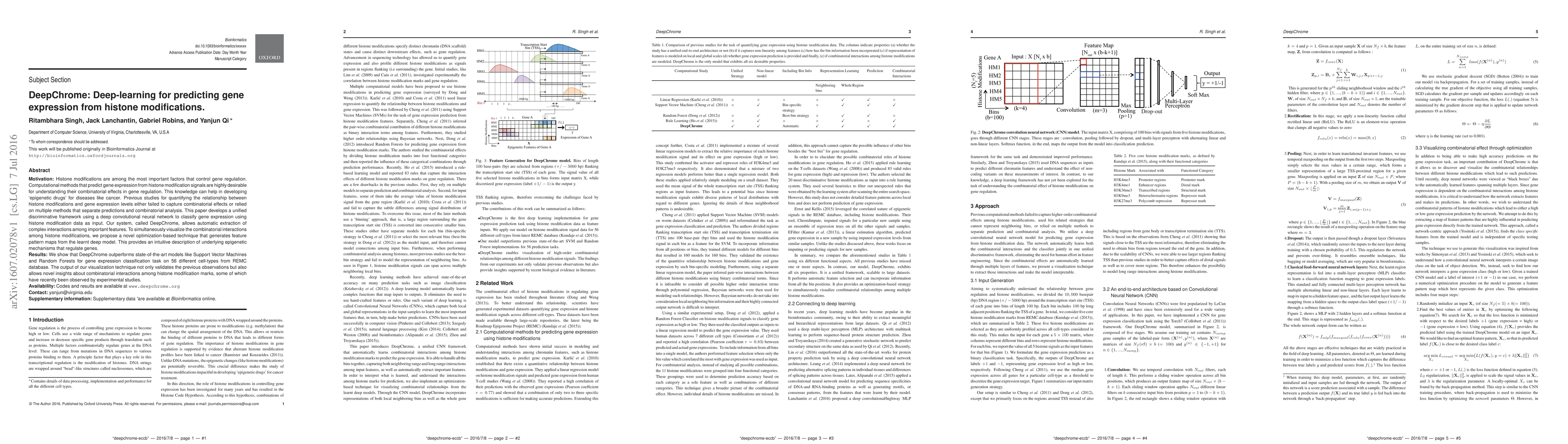 DeepChrome uses deep convolutional neural networks to predict gene expression from histone modification data, outperforming existing methods. It also introduces a visualization technique to reveal complex interactions among histone modifications, providing insights into gene regulation mechanisms.