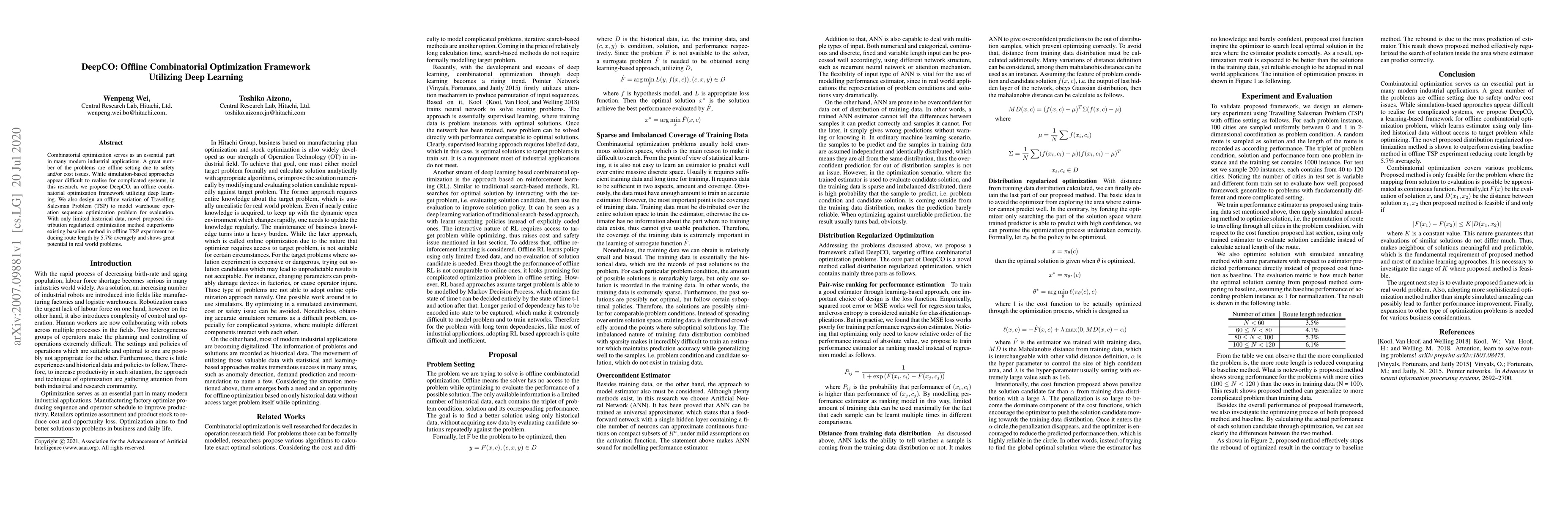 Researchers propose DeepCO, an offline combinatorial optimization framework using deep learning, which improves route length reduction for warehouse operations by 5.7% on average.