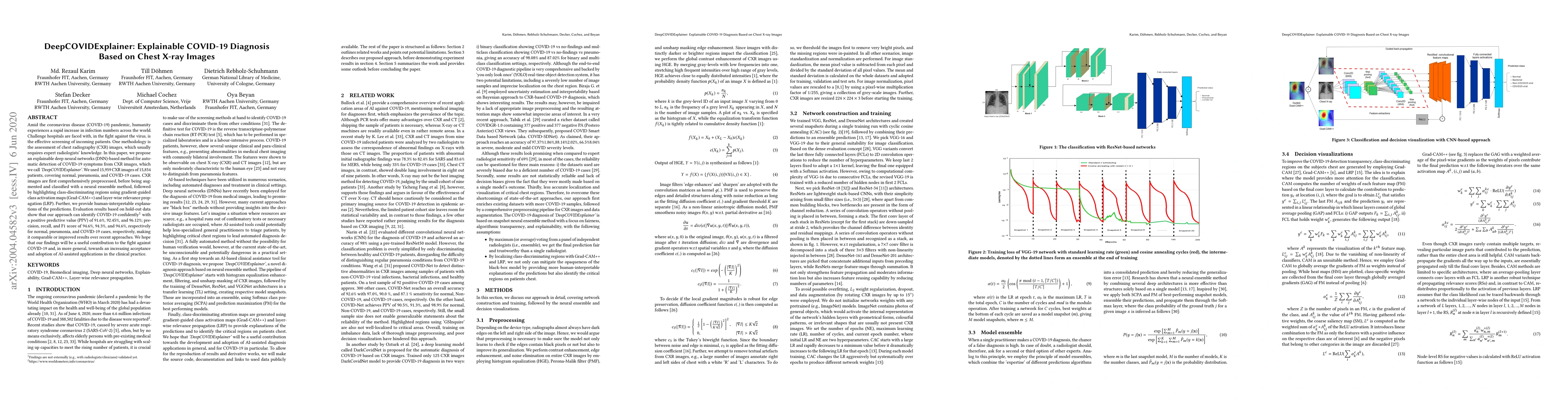 DeepCOVIDExplainer uses explainable deep neural networks to automatically detect COVID-19 from chest X-ray images, providing interpretable explanations via Grad-CAM++ and LRP, achieving high accuracy comparable to recent methods. The method aims to aid clinical practice and improve AI adoption in healthcare.