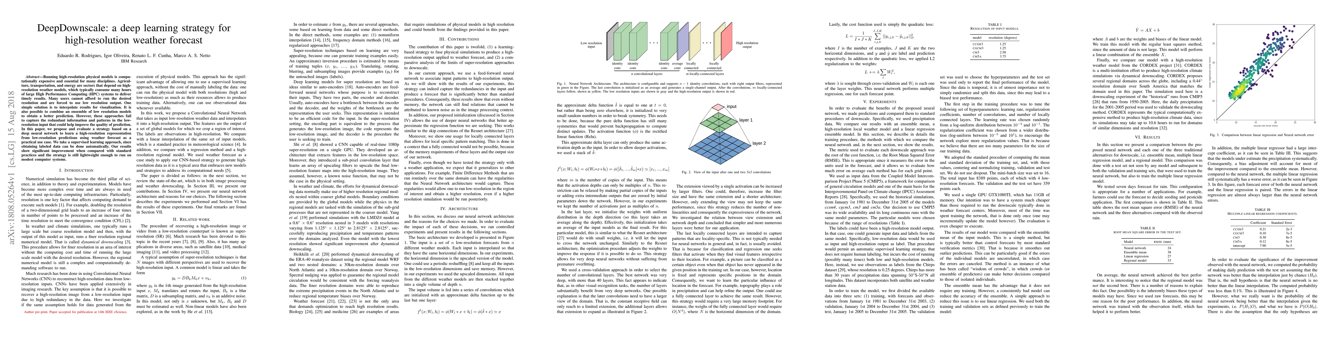 The paper proposes DeepDownscale, a deep learning strategy to upscale low-resolution weather forecasts into high-resolution outputs, significantly improving prediction quality while remaining computationally efficient. This approach leverages supervised learning to learn from automatically labeled data, demonstrating notable improvements over traditional methods.