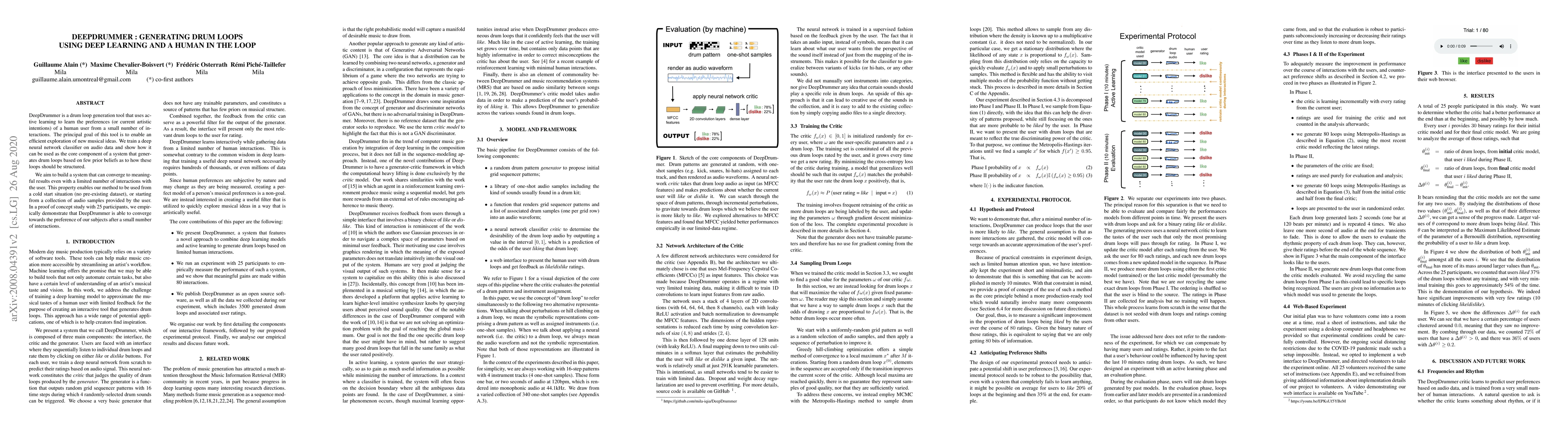 DeepDrummer is a drum loop generation tool that uses active learning to learn the preferences (or current artistic intentions) of a human user from a small number of interactions. The principal goal of this tool is to enable an efficient exploration of new musical ideas. We train a deep neural network classifier on audio data and show how it can be used as the core component of a system that generates drum loops based on few prior beliefs as to how these loops should be structured. We aim to build a system that can converge to meaningful results even with a limited number of interactions with the user. This property enables our method to be used from a cold start situation (no pre-existing dataset), or starting from a collection of audio samples provided by the user. In a proof of concept study with 25 participants, we empirically demonstrate that DeepDrummer is able to converge towards the preference of our subjects after a small number of interactions.